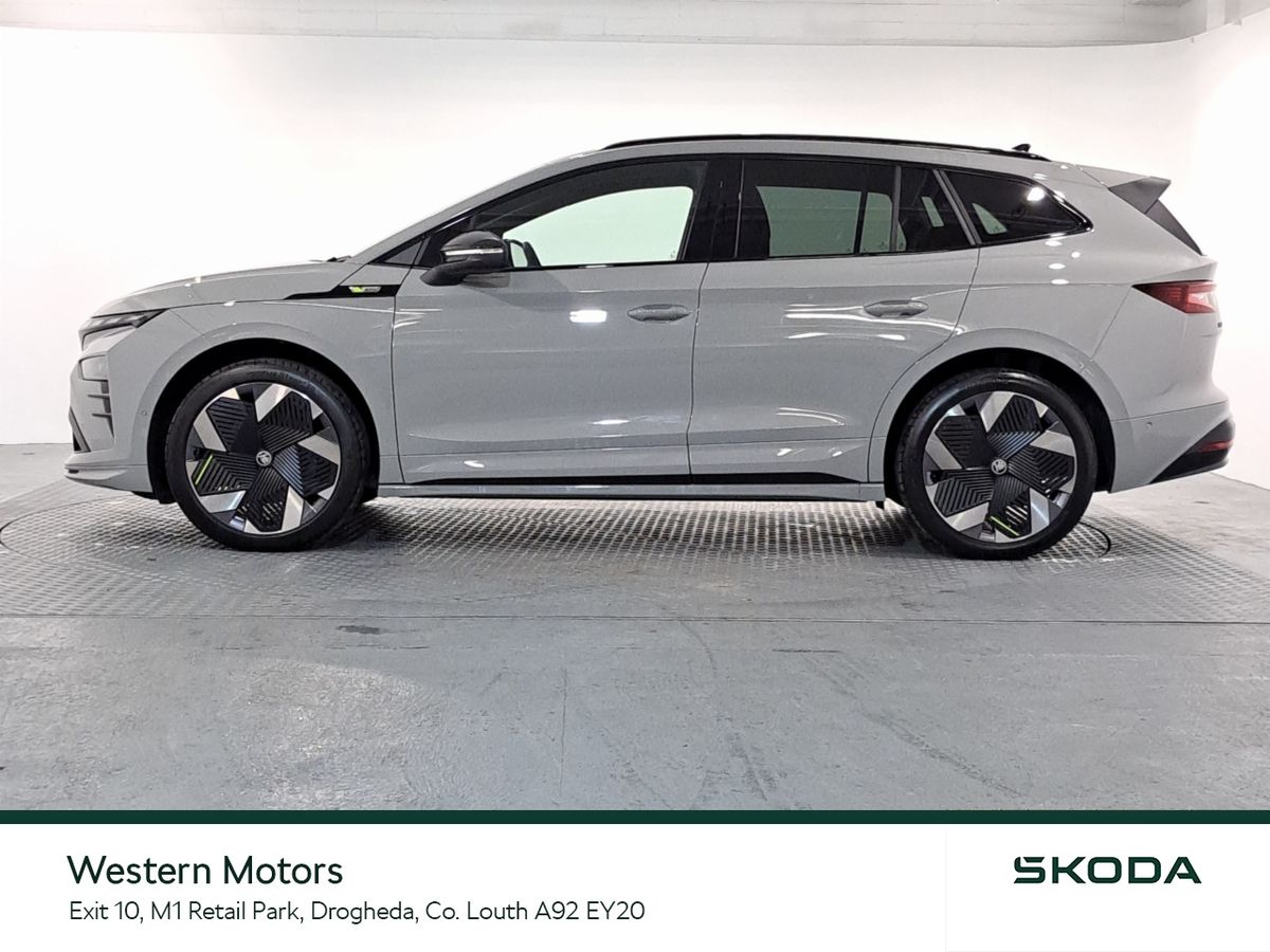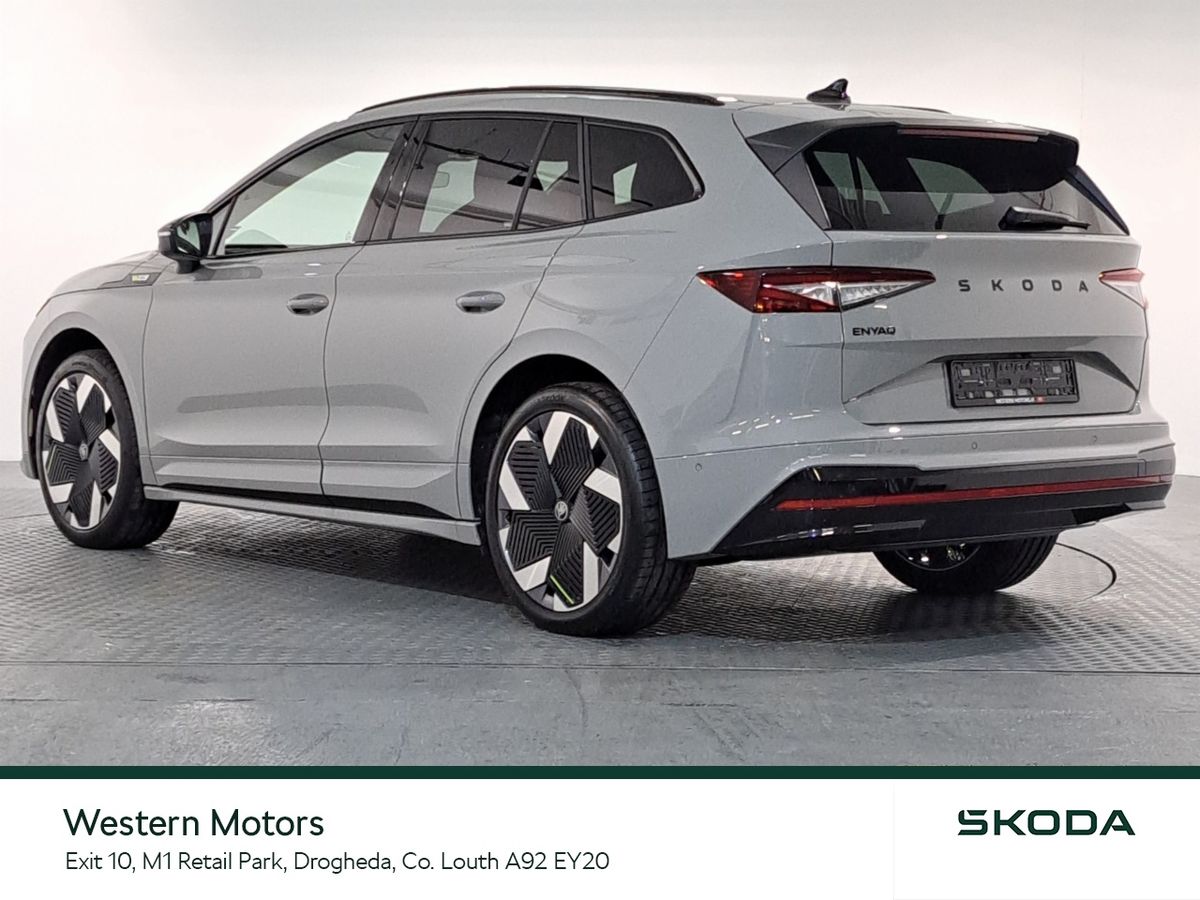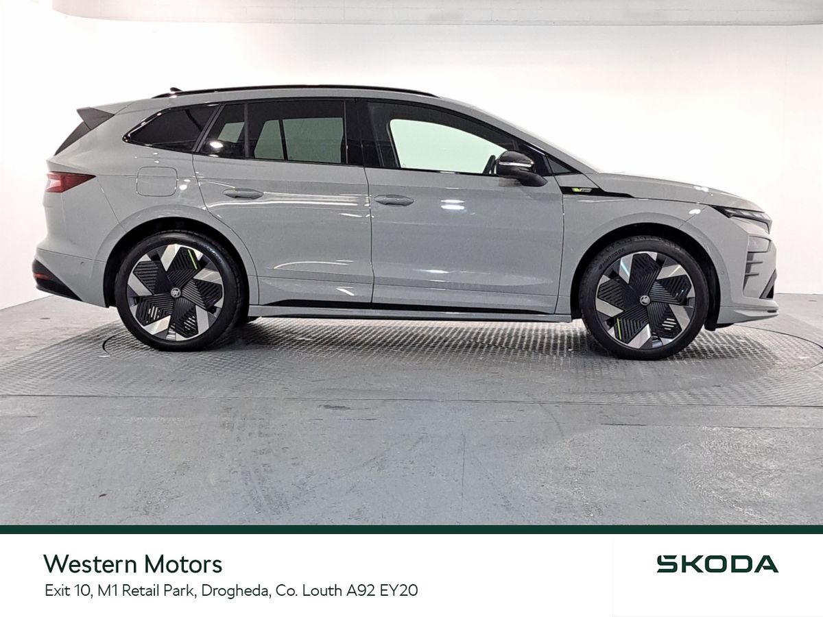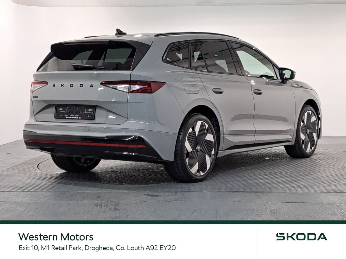 Now available for sale at Western Motors Drogheda is the headturning ŠKODA Enyaq RS. This stunning Enyaq offers the unique EV driving experience matched with historic RS performance offering up to 250kw in power and a range of up to 549kms