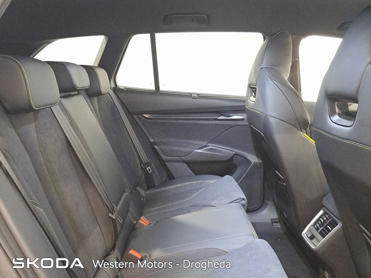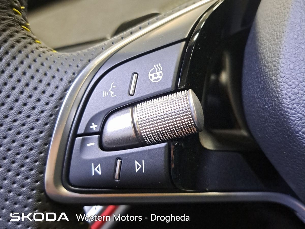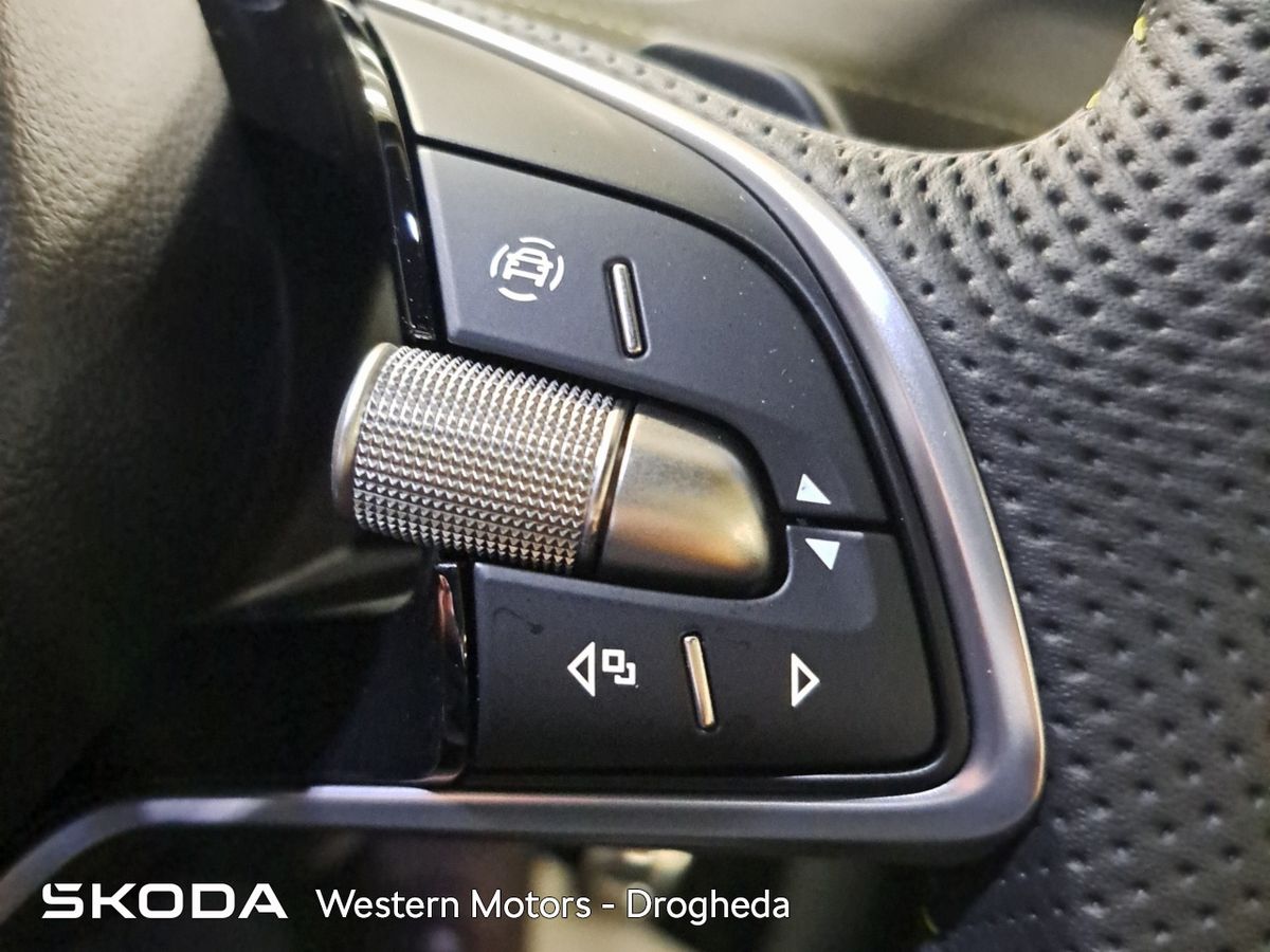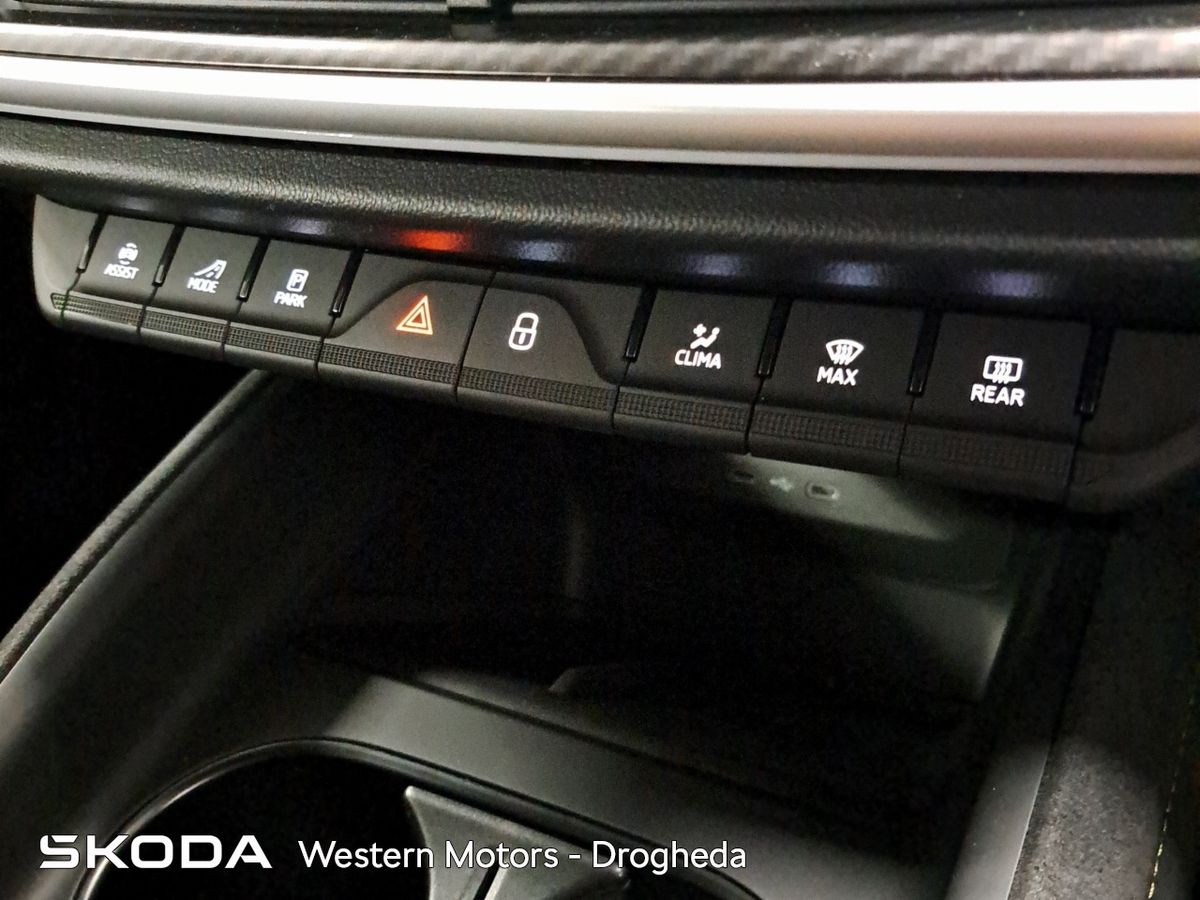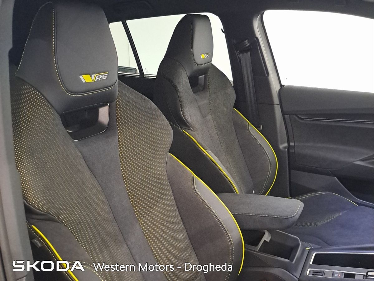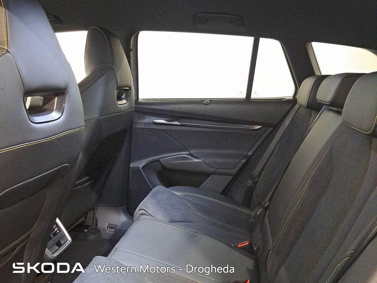Offering an all new sleek design and Modern Solid finish the Enyaq offers a high quality finish and includes front & rear parking sensors with rear view camera, Adaptive Cruise Control,13" touchscreen radio with bluetooth, android auto & apple car play, heated front seats, Electric Tailgate, electric drivers seat with massage funcitonality, 21" Vision Alloys, plus the exclusive RS interior finish from sports seats, aluminium sports pedals, plus much more