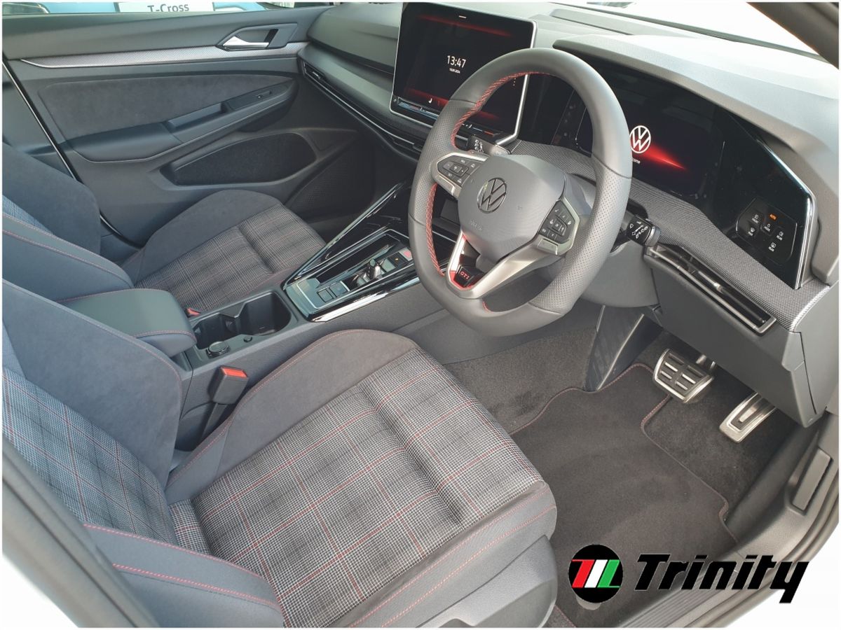 TRINITY VOLKSWAGEN ARE EXCITED TO OFFER THE ALL NEW VOLKSWAGEN GOLF GTI FINISHED IN PURE WHITE PAINTWORK AND IS COMPLEMENTED BY SPORTS PLAID CLOTH SEATING