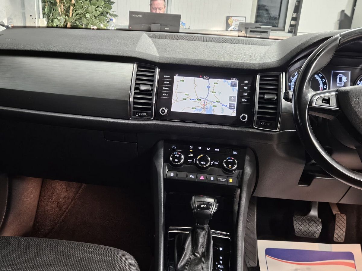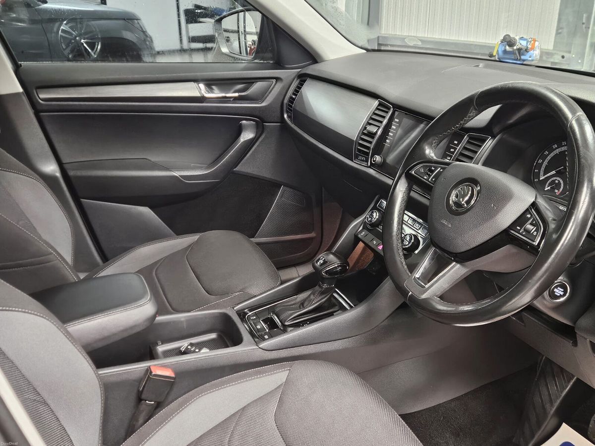 THIS SKODA KODIAQ AMBITION 5 SEATER EDITION COMES EQUIPPED WITH LOTS OF EXTRAS INC ALLOYS,FOGS,CLIMATE CON,CRUISE CONTROL,BLUETOOTH WITH AUDIO SHARE/SAT-NAV AND APP DOWNLOAD,ELECTRIC WINDOWS/MIRRORS,FLAWLESS CLOTH INTERIOR ,ILLUMINATED FOOTWELLS,CHROME PACK WITH ROOF-BARS,PRIVACY GLASS AND IS FINISHED IN CARBON GREY