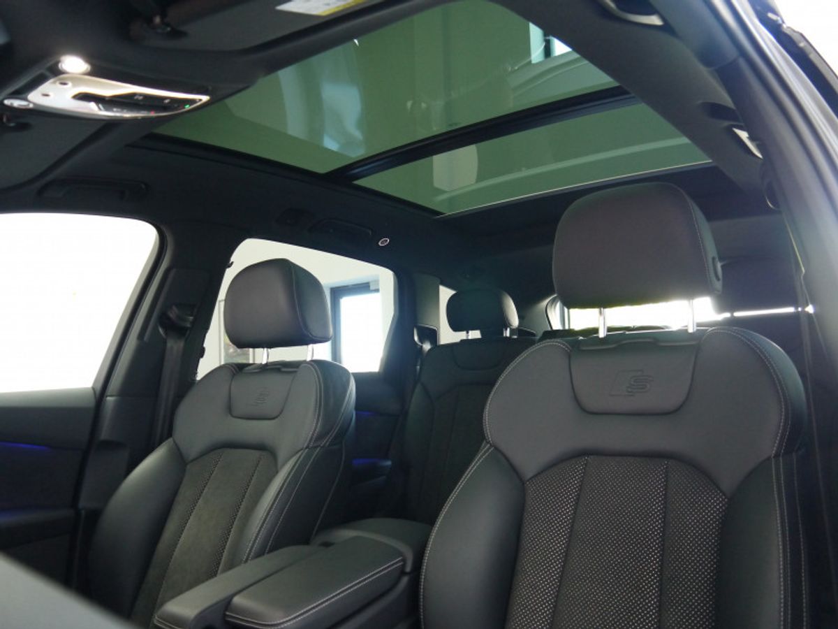 Panoramic roof, Reverse camera, Side steps, Technology pack with Wireless charging, 21" wheels, MMI navigation High , Virtual Cockpit, Driver/Pas, Ambient light Pack, Audi Connect, Deluxe 4-zone climate control, S line 3-spoke leather-trimmed multi-function steering wheel, Front sports seats, Privacy glass, S-line pack, Heated seats, Electrically adjustable 4-way lumbar support, Headlining in black cloth, Alcantara/leather with S line embossing on the front seats, All-weather LED headlights, Comfort front centre armrest, Door mirrors - Electrically folding - adjustable and heated, High beam assist, LED rear lights, S line bumpers, S line spoiler , Audi warranty.