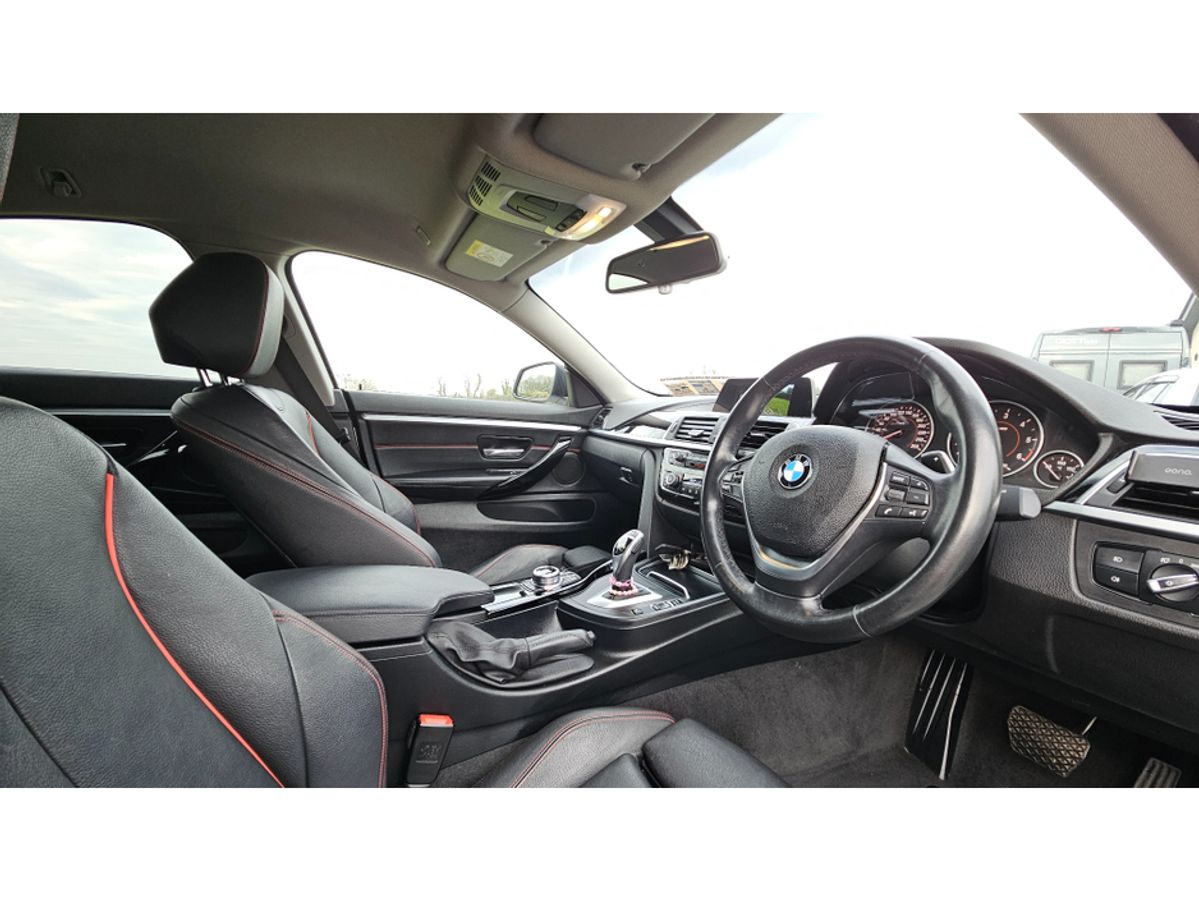 420D Gran Coupe Sport with features such as 18'' Diamond cut alloy wheels with 4 new runflat tyres, Full black leather interior with gloss black dash trims and leather multi-functional steering wheel, heated seats, full electric windows and mirrors, BMW Media pack with Sat Nav and Bluetooth phone kit, Carbon style mirrors, Xenon Lights, Front fog lights, rear tinted windows and more.