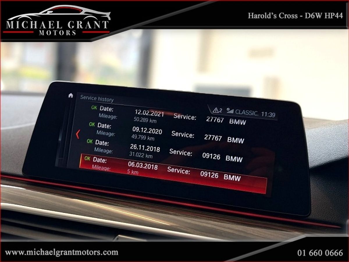 MICHAEL GRANT MOTORS ARE PROUD TO PRESENT THIS IRISH CAR EXAMPLE OF 2018 BMW 520D SALOON WITH LOW MILEAGE AND A FULL MAIN DEALER SERVICE HISTORY. LOW ROAD TAX €190. CALL 01 66 00 666 FOR MORE INFO