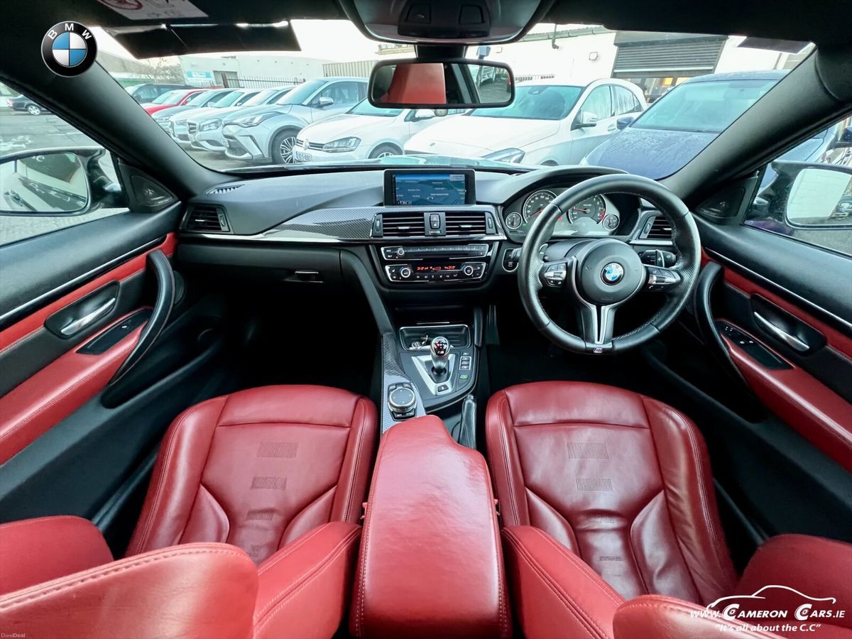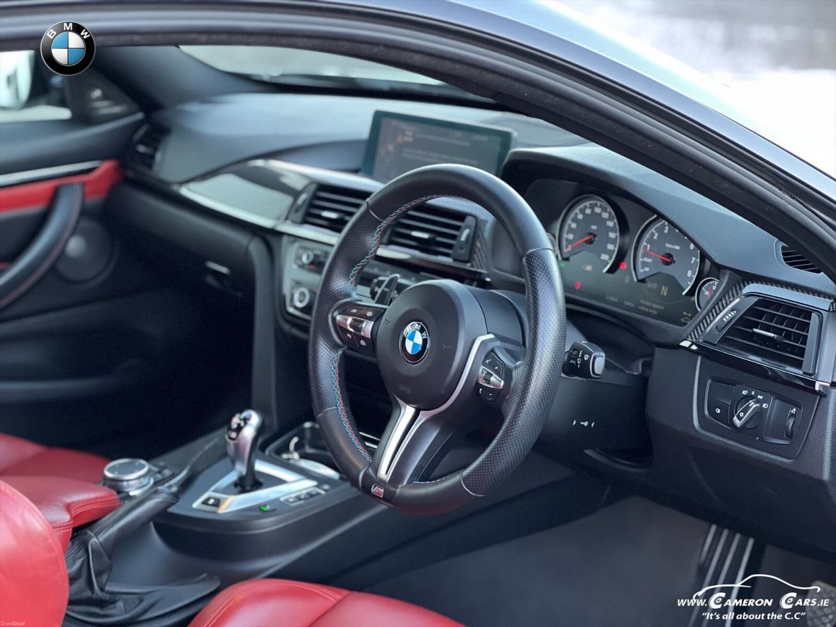 The interior is finished in a striking extended red leather, perfectly complementing the exterior and giving the cabin a true motorsport feel. The cockpit is driver-focused and features carbon fibre interior trim, sports steering wheel, and BMWs intuitive infotainment system.