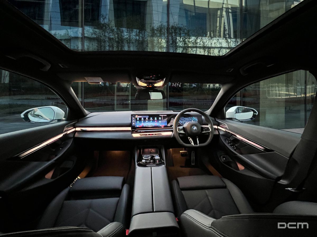 Full Leather M Sport Interior, Fully Electric Seats with BMW Comfort Seat Package, Drivers Seat with Memory Function, Front & Rear Heated Seats, Multifunction Flat-Bottom Steering Wheel, Multicoloured Ambient Lighting, M BOOST Paddle, Four-Zone Automatic Climate Control, Champagne Metallic Trim Inlays, LED Interior Lighting, Footwell Lights, Illuminated Vanity Mirrors & Glove Compartment, Central Armrest with Storage Compartment, Split-Folding Rear Seat Bench (60/40), and ISOFIX Child Seat Mounts.