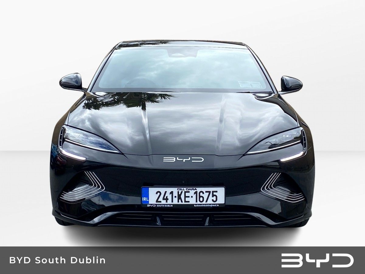 Standard equipment for all models includes: Electric Hidden Door Handle, Front Trunk With Cover (53L), Integrated Sports Seats, Leather Multi-Function with Heating Steering Wheel, 12V Power Output, PM 2.5 Purification System, Smartphone Wireless Charging, 12 Speaker Dynaudio Audio System, Crystal Gearshift Lever, Voice Control (“Hi BYD”), and Heat Pump.