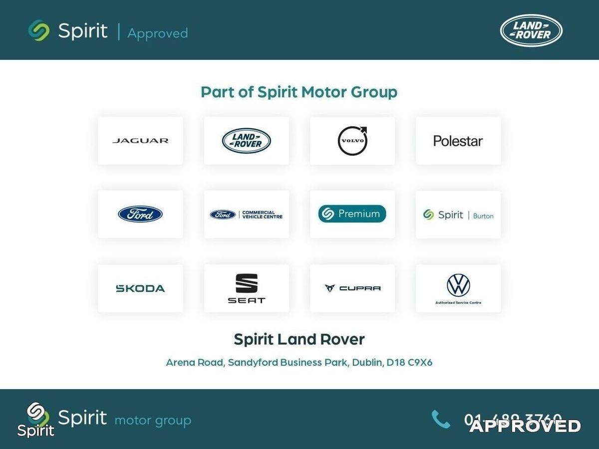 **** Car No.49 **** 20" Style 5094 Alloy Wheels Finished In Satin Dark Grey, Perforated Windsor Leather Seats Finished In Caraway With Ebony Upholstory, LED Premium Headlamps With LED Daytime Running Lamps, SmartPhone Pack (Apple CarPlay & Android Auto), Sliding Panoramic Roof, Heated And Cooled Front Seats, Heated Windscreen, Heated Washerjets, Heated Steering Wheel, Meridian Sound System, Privacy Glass, Front and Rear Park Sensors With Rear Facing Camera,USB Connectivity , Bluetooth™ Connectivity With Audio Streaming , ABS , Lane Departure Warning , Electric Park Brake , Dynamic Stability Control , Emergency Brake Assist.