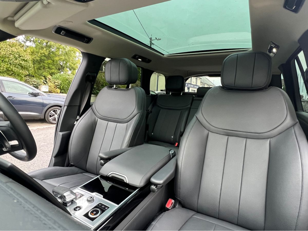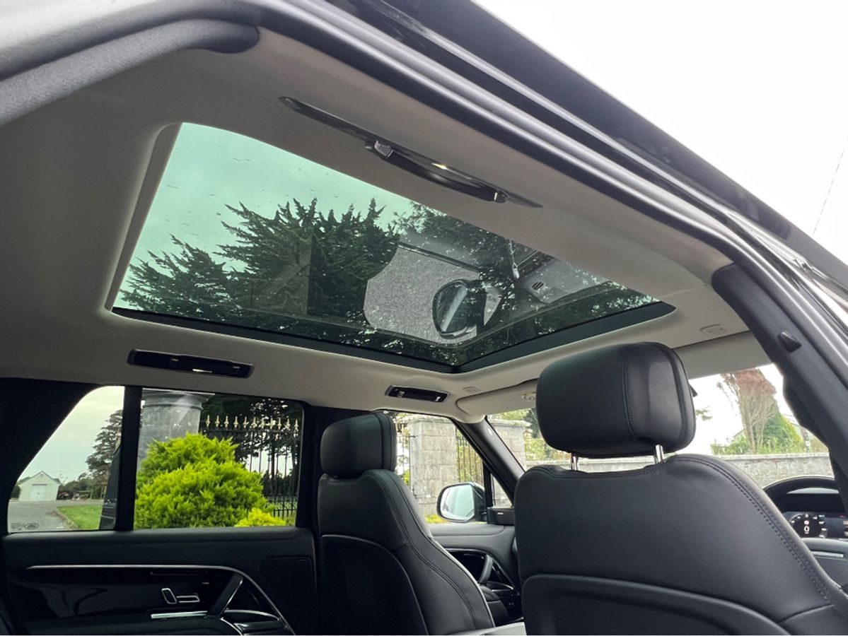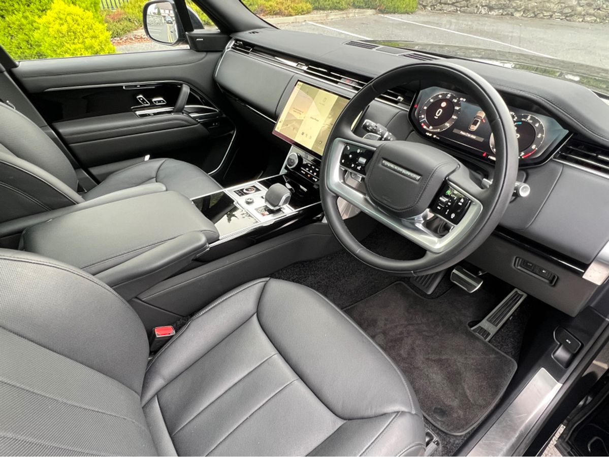 2023 (231) RANGE ROVER P440e SE AUTO PLUG IN HYBRID...SANTORINI BLACK METALLIC...FULL WINDSOR EBONY PERFORATED LEATHER INTERIOR TRIM WITH EBONY DASH AND DOORCARDS...MORZINE HEADLINING...PIANO BLACK VENEER WOOD INTERIOR TRIM...FULL GLASS PANORAMIC SUNROOF....22 INCH UPGRADED HIGH GLOSS BLACK WHEEL...EXTERIOR SHADOW PACK...REAR PRIVACY GLASS...FOUR WHEEL STEERING...SOFT CLOSE DOORS...HEATED STEERING WHEEL...BLACK BRAKE CALIPERS...LANDROVER KEYLESS ENTRY AND START...20 WAY FULLY ELECTRIC MEMORY AND HEATED FRONT SEATS WITH HEATED POWER RECLINE REAR SEATS...REVERSE ASSIST CAMERA...360 DEGREE 3D SURROUND VIEW CAMERAS...PARK DISTANCE CONTROL FRONT AND REAR WITH VISUAL DISPLAY...LANDROVER PASRK ASSIST WITH SELF PARKING...LANDROVER PIVI PRO SYSTEM WITH 13.1 INCH TOUCH SCREEN DISPLAY...SATELLITE NAVIGATION...TRAFFIC SIGN RECOGNITION WITH SPEED LIMIT DISPLAY...BLUETOOTH PHONE SYSTEM...APPLE CAR PLAY...ANDROID AUTO...USB C INTERFACE...WIRELESS CHARGING TRAY...LANDROVER 600W MERIDIAN SURROUND SOUND SYSTEM...LEATHER MULTI FUNCTION STEERING WHEEL...ADAPTIVE CRUISE CONTROL...BLIND SPOT ASSIST...LANE CHANGE ASSIST...PIXEL LED HEADLIGHTS WITH SIGNATURE DRL...AUTO ON LIGHTS...HIGH BEAM ASSIST...DUAL ZONE AUTO CLIMATE CONTROL FRONT AND REAR... AIR QUALITY SENSORS...HEATED FRONT WINDSCREEN...AUTO BOOTLID...LANDROVER ADAPTIVE DYNAMICS AIR SUSPENSION...AMBIENT INTERIOR CABIN MOOD LIGHTING...ISOFIX...MULTIPLE AIR BAGS...