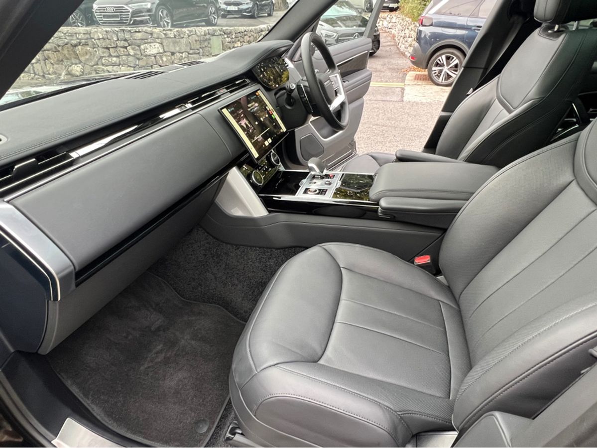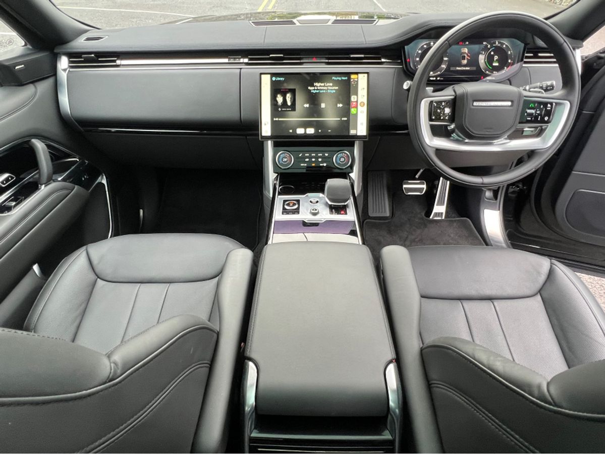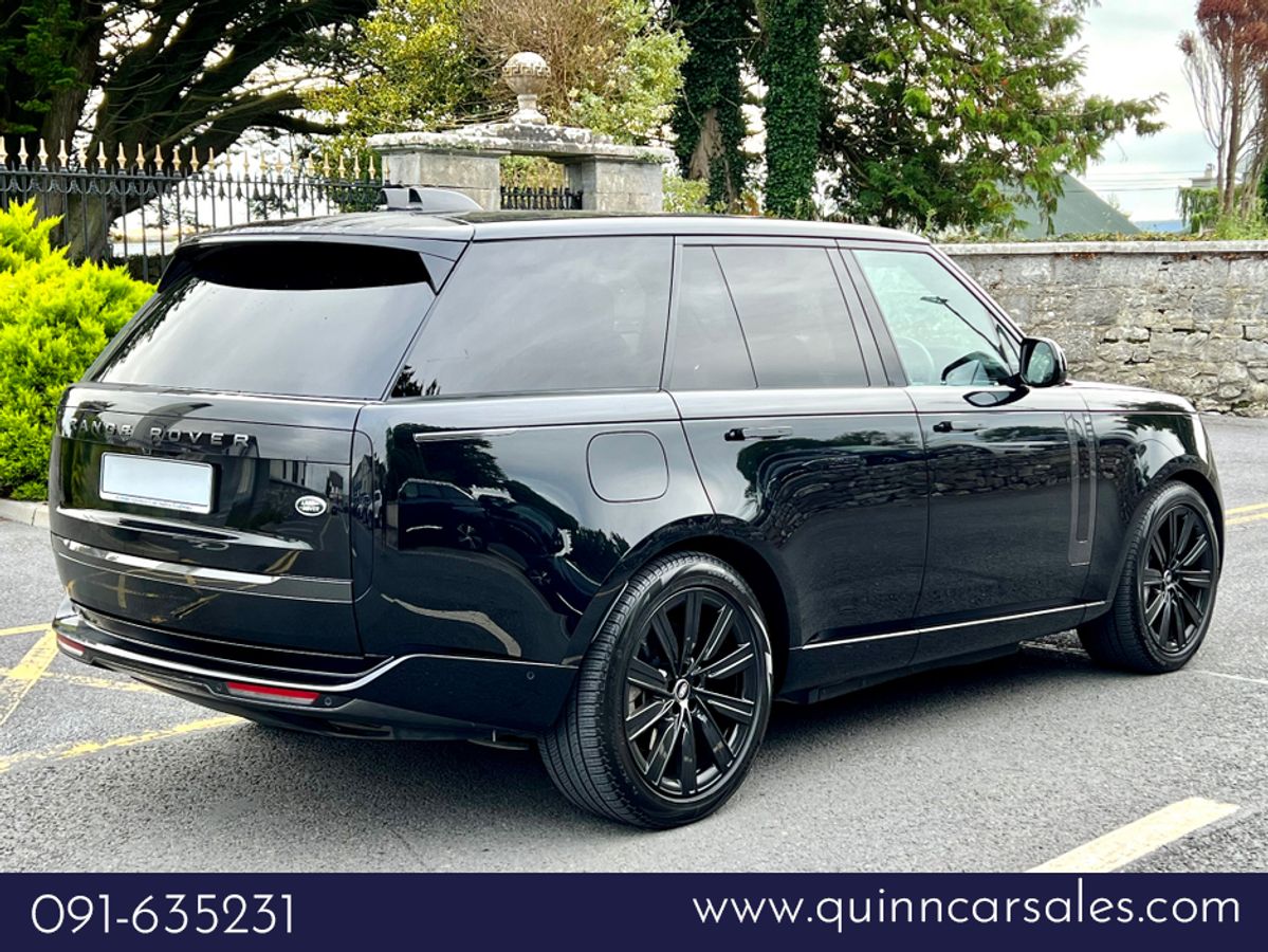 2023 (231) RANGE ROVER P440e SE AUTO PLUG IN HYBRID...SANTORINI BLACK METALLIC...FULL WINDSOR EBONY PERFORATED LEATHER INTERIOR TRIM WITH EBONY DASH AND DOORCARDS...MORZINE HEADLINING...PIANO BLACK VENEER WOOD INTERIOR TRIM...FULL GLASS PANORAMIC SUNROOF....22 INCH UPGRADED HIGH GLOSS BLACK WHEEL...EXTERIOR SHADOW PACK...REAR PRIVACY GLASS...FOUR WHEEL STEERING...SOFT CLOSE DOORS...HEATED STEERING WHEEL...BLACK BRAKE CALIPERS...LANDROVER KEYLESS ENTRY AND START...20 WAY FULLY ELECTRIC MEMORY AND HEATED FRONT SEATS WITH HEATED POWER RECLINE REAR SEATS...REVERSE ASSIST CAMERA...360 DEGREE 3D SURROUND VIEW CAMERAS...PARK DISTANCE CONTROL FRONT AND REAR WITH VISUAL DISPLAY...LANDROVER PASRK ASSIST WITH SELF PARKING...LANDROVER PIVI PRO SYSTEM WITH 13.1 INCH TOUCH SCREEN DISPLAY...SATELLITE NAVIGATION...TRAFFIC SIGN RECOGNITION WITH SPEED LIMIT DISPLAY...BLUETOOTH PHONE SYSTEM...APPLE CAR PLAY...ANDROID AUTO...USB C INTERFACE...WIRELESS CHARGING TRAY...LANDROVER 600W MERIDIAN SURROUND SOUND SYSTEM...LEATHER MULTI FUNCTION STEERING WHEEL...ADAPTIVE CRUISE CONTROL...BLIND SPOT ASSIST...LANE CHANGE ASSIST...PIXEL LED HEADLIGHTS WITH SIGNATURE DRL...AUTO ON LIGHTS...HIGH BEAM ASSIST...DUAL ZONE AUTO CLIMATE CONTROL FRONT AND REAR... AIR QUALITY SENSORS...HEATED FRONT WINDSCREEN...AUTO BOOTLID...LANDROVER ADAPTIVE DYNAMICS AIR SUSPENSION...AMBIENT INTERIOR CABIN MOOD LIGHTING...ISOFIX...MULTIPLE AIR BAGS...