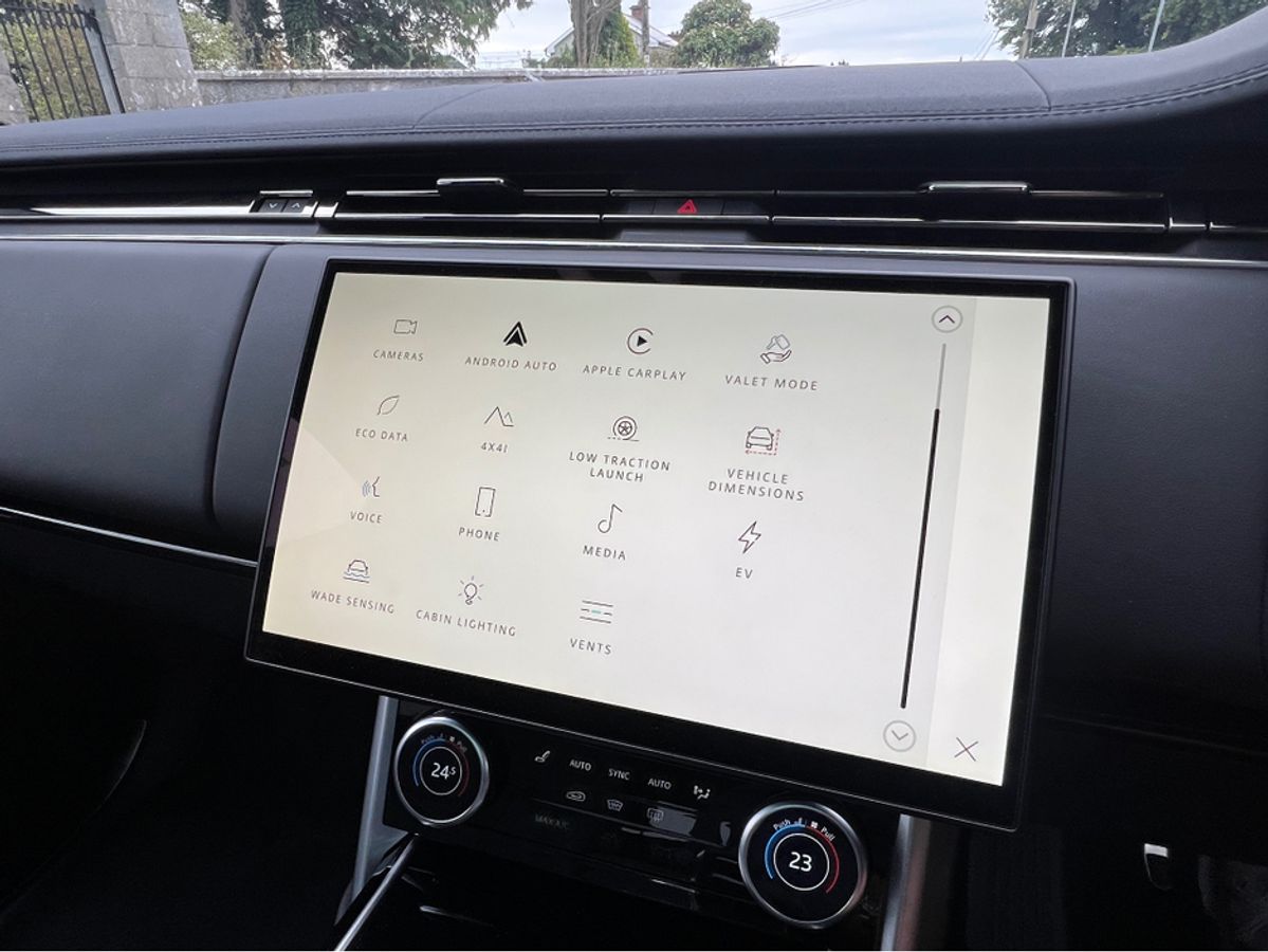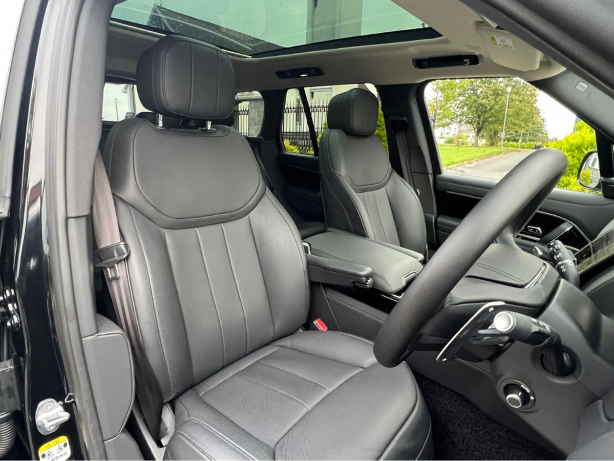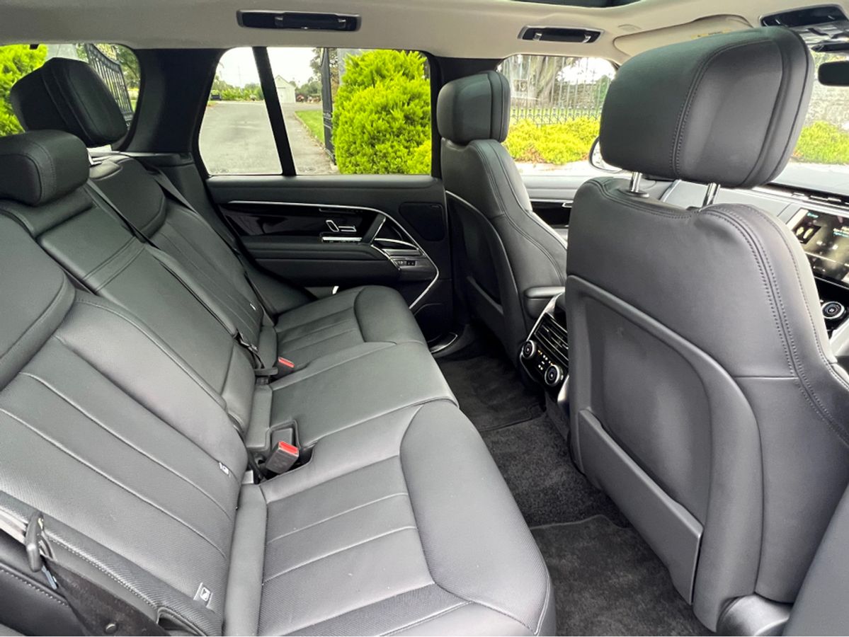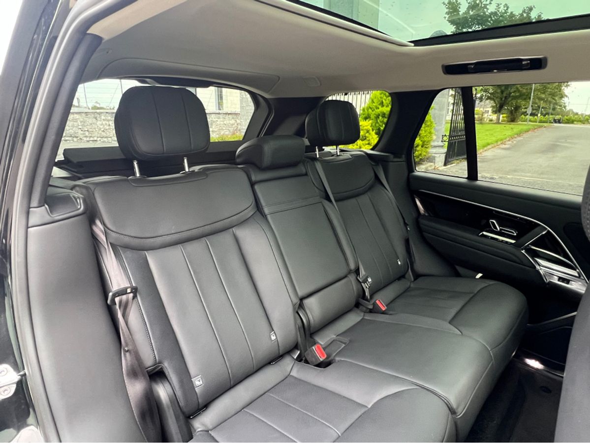 2023 (231) RANGE ROVER P440e SE AUTO PLUG IN HYBRID...SANTORINI BLACK METALLIC...FULL WINDSOR EBONY PERFORATED LEATHER INTERIOR TRIM WITH EBONY DASH AND DOORCARDS...MORZINE HEADLINING...PIANO BLACK VENEER WOOD INTERIOR TRIM...FULL GLASS PANORAMIC SUNROOF....22 INCH UPGRADED HIGH GLOSS BLACK WHEEL...EXTERIOR SHADOW PACK...REAR PRIVACY GLASS...FOUR WHEEL STEERING...SOFT CLOSE DOORS...HEATED STEERING WHEEL...BLACK BRAKE CALIPERS...LANDROVER KEYLESS ENTRY AND START...20 WAY FULLY ELECTRIC MEMORY AND HEATED FRONT SEATS WITH HEATED POWER RECLINE REAR SEATS...REVERSE ASSIST CAMERA...360 DEGREE 3D SURROUND VIEW CAMERAS...PARK DISTANCE CONTROL FRONT AND REAR WITH VISUAL DISPLAY...LANDROVER PASRK ASSIST WITH SELF PARKING...LANDROVER PIVI PRO SYSTEM WITH 13.1 INCH TOUCH SCREEN DISPLAY...SATELLITE NAVIGATION...TRAFFIC SIGN RECOGNITION WITH SPEED LIMIT DISPLAY...BLUETOOTH PHONE SYSTEM...APPLE CAR PLAY...ANDROID AUTO...USB C INTERFACE...WIRELESS CHARGING TRAY...LANDROVER 600W MERIDIAN SURROUND SOUND SYSTEM...LEATHER MULTI FUNCTION STEERING WHEEL...ADAPTIVE CRUISE CONTROL...BLIND SPOT ASSIST...LANE CHANGE ASSIST...PIXEL LED HEADLIGHTS WITH SIGNATURE DRL...AUTO ON LIGHTS...HIGH BEAM ASSIST...DUAL ZONE AUTO CLIMATE CONTROL FRONT AND REAR... AIR QUALITY SENSORS...HEATED FRONT WINDSCREEN...AUTO BOOTLID...LANDROVER ADAPTIVE DYNAMICS AIR SUSPENSION...AMBIENT INTERIOR CABIN MOOD LIGHTING...ISOFIX...MULTIPLE AIR BAGS...