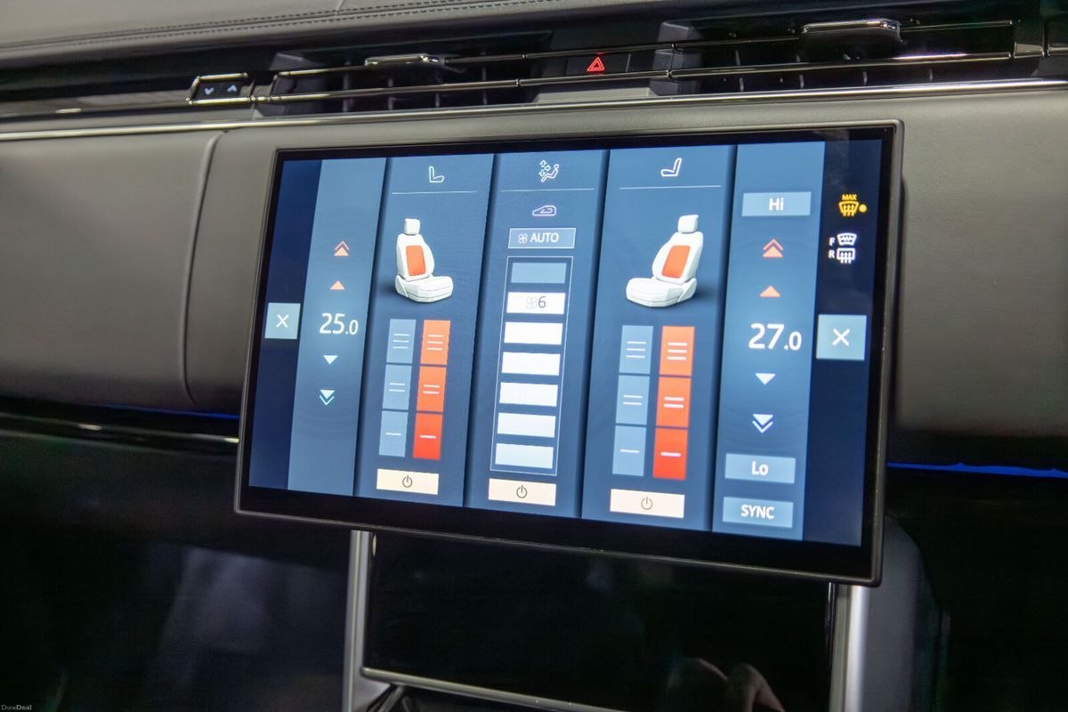 Air conditioning, Climate control, Dual zone climate control, Armrest, Keyless entry, Electrically adjustable seats, Heated windshield, Electric boot, Electric side mirrors, Electric windows, Electric handbrake, Heated seats, Lumbar support, Multi-function steering wheel, Rain sensor, Gear shift paddles, Android Auto, Apple CarPlay, Bluetooth, 12v power outlet, Radio, Touch screen display, USB connection (front), Wifi, Adaptive cruise control, Cruise control, Hill hold assist, Navigation system, Parking camera, Front parking sensors, Rear parking sensors, Remote boot release, Speed limiter, Start-stop system, Traffic sign recognition, Voice control, Parking assistance, Digital instrument panel, Alloy wheels, Leather interior, Leather steering wheel, Spoiler, Adaptive headlights, Ambient lighting, Auto lights (dusk sensor), Daytime running lights, Fog lights, High beam assist, LED headlights, ABS, Lane change assist, Anti collision system, Alarm system, Emergency brake assist, Central locking, Driver-side airbag, Immobilizer, Isofix, Lane departure warning, Tyre pressure monitor, Passenger-side airbag, Seat belt warning, Side airbag, Stability control, Traction control, Emergency tyre repair kit, Air suspension, 4WD
