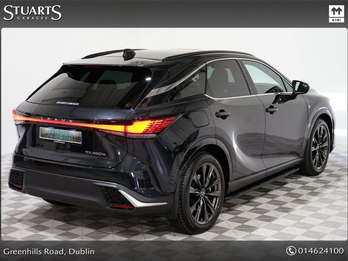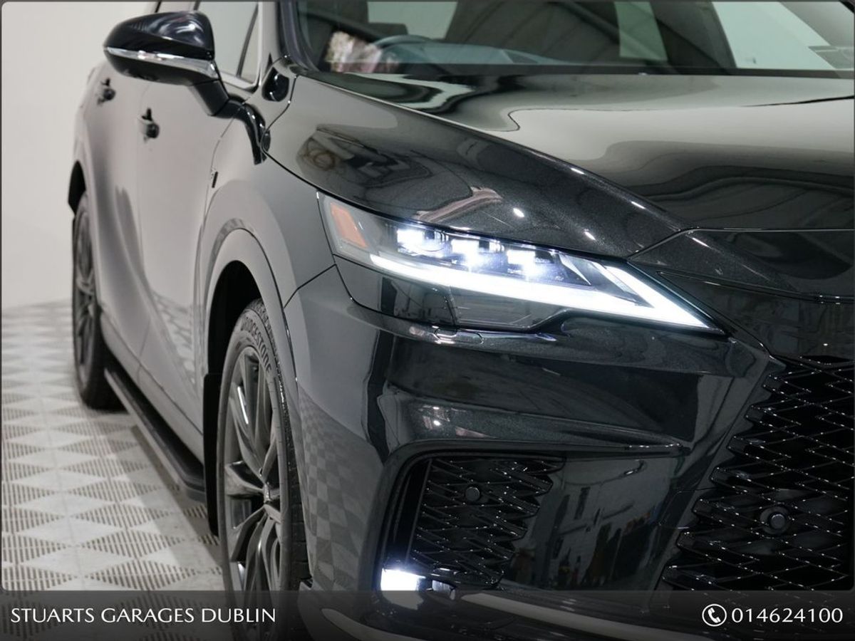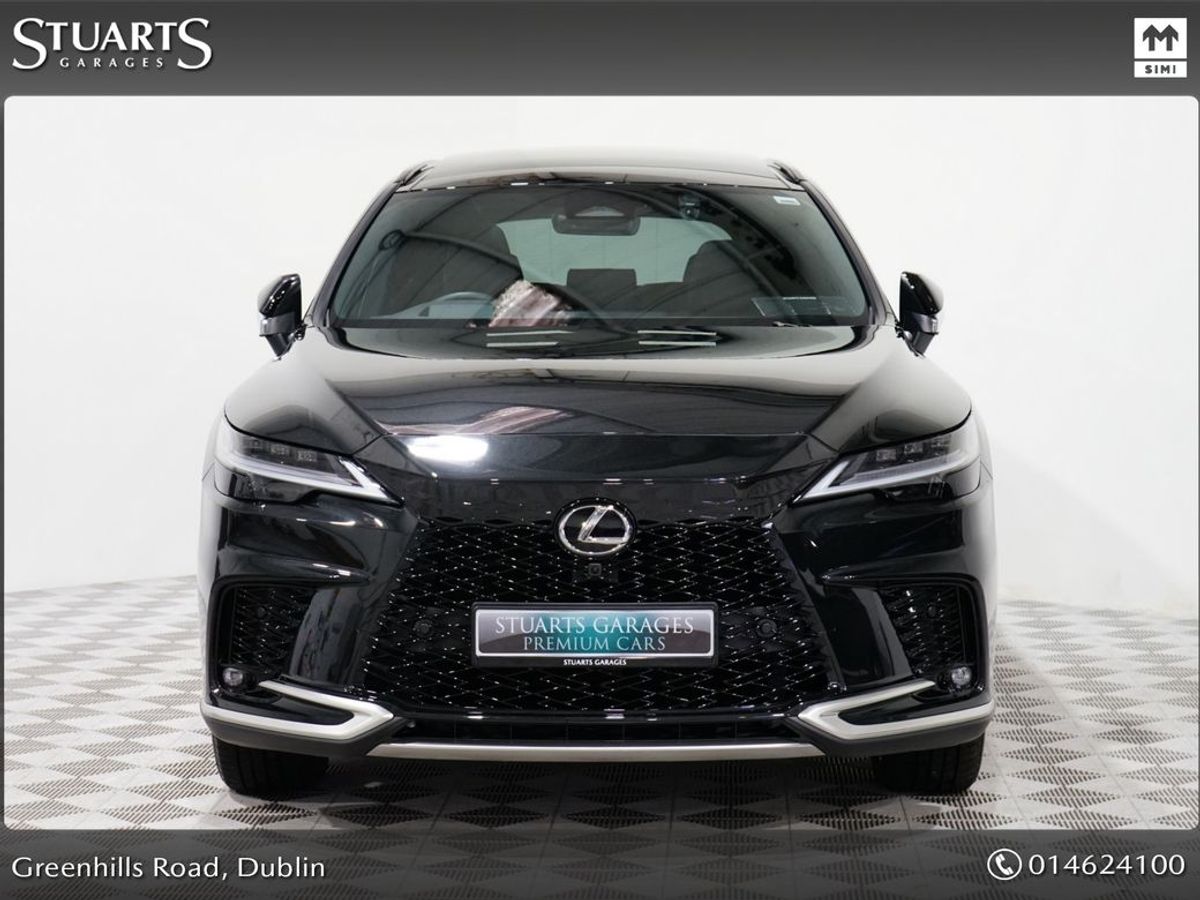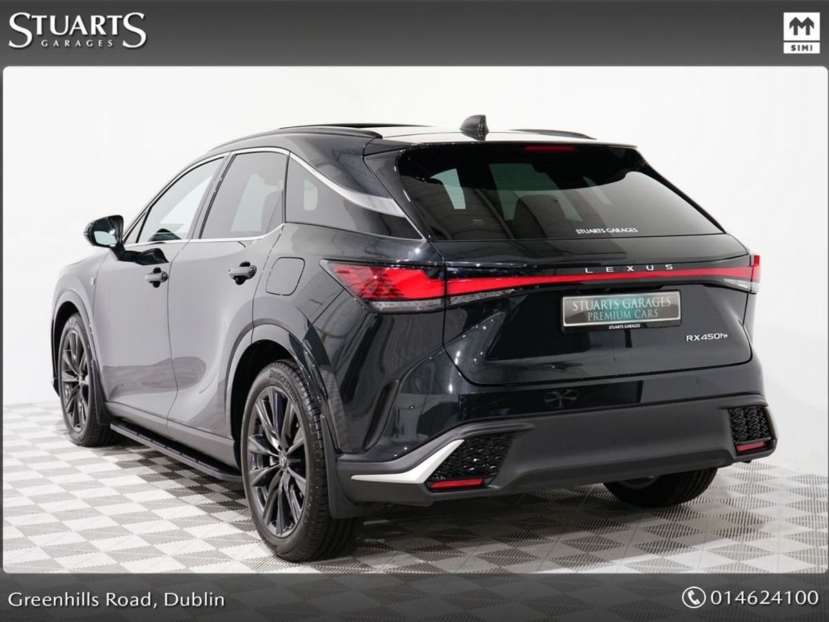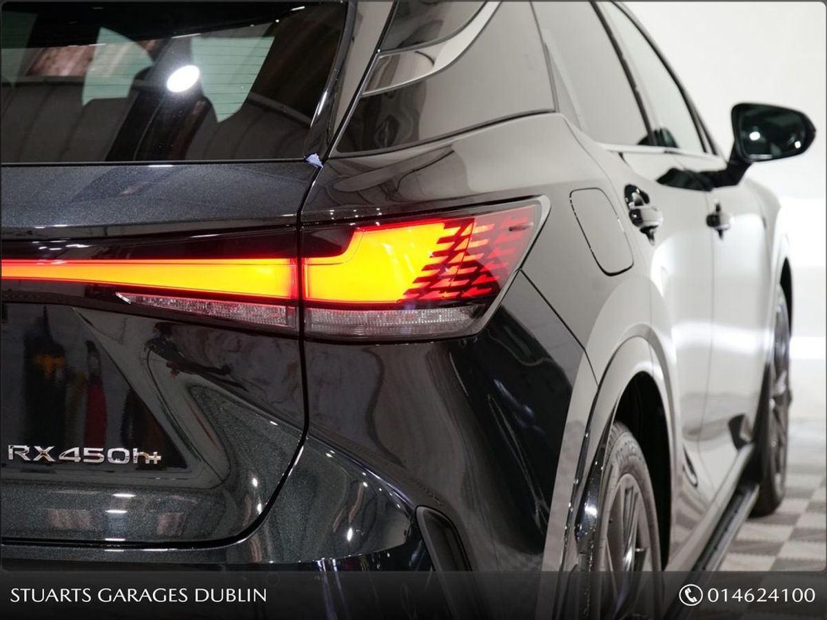 RX450+ PHEV F-SPORT: GRAPHITE BLACK METALLIC, BLACK LEATHER WITH BLACK HOLOGRAM INLAYS, 21 BLACK GLOSS 10 SPOKE ALLOYS, RUNNING BOARDS, PANORAMIC SUNROOF, TRIPPLE LED HEADLIGHTS, EXTERIOR BLACK PACK, HEADS UP, WIRELESS PHONE CHARGER, HEATED STEERING WHEEL, VENTILATED SEATS, ELECTRIC MEMORY SEATS, POWER BOOT, KEYLESS ENTRY, 3 ZONE CLIMATE, WIRELESS APPLE CARPLAY AND ANDROID AUTO, LANE ASSIST, BLIND-SPOT MONITORING ETC