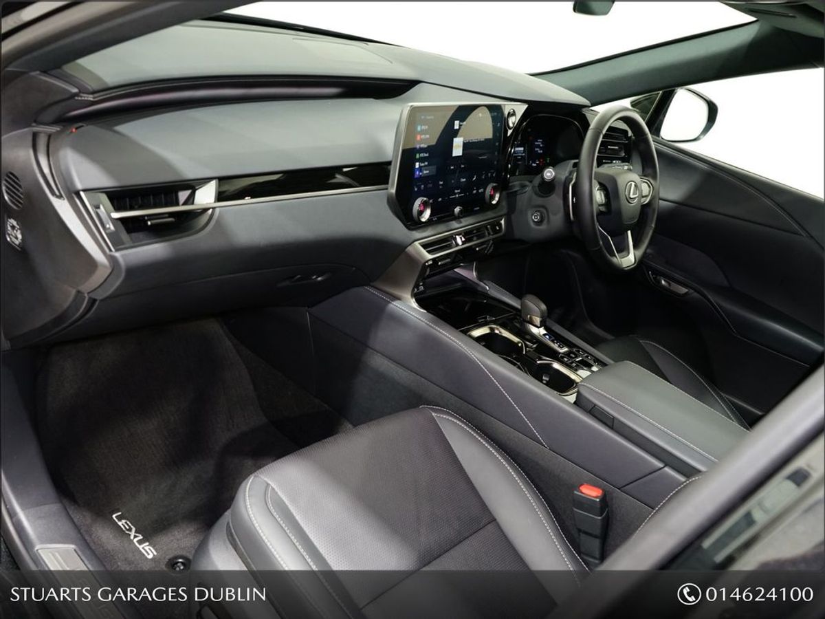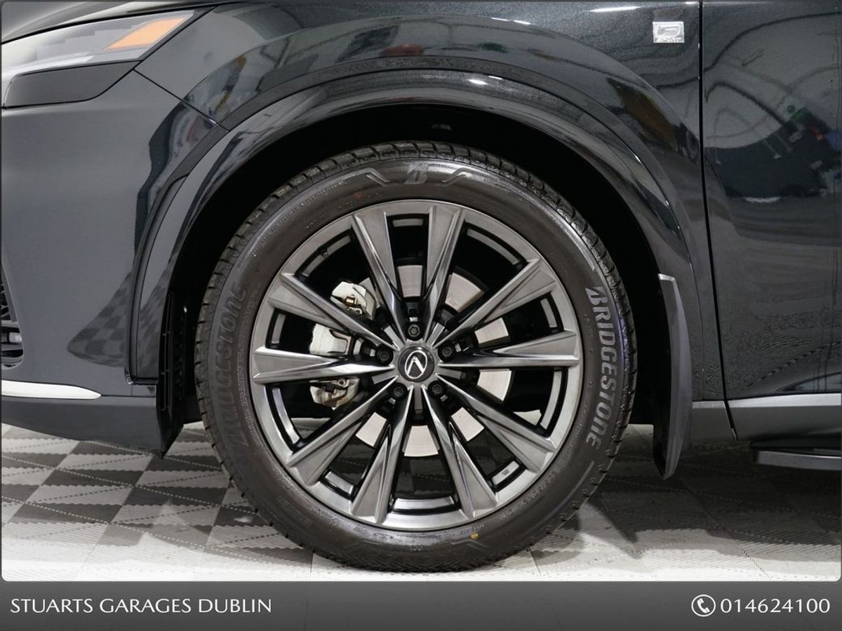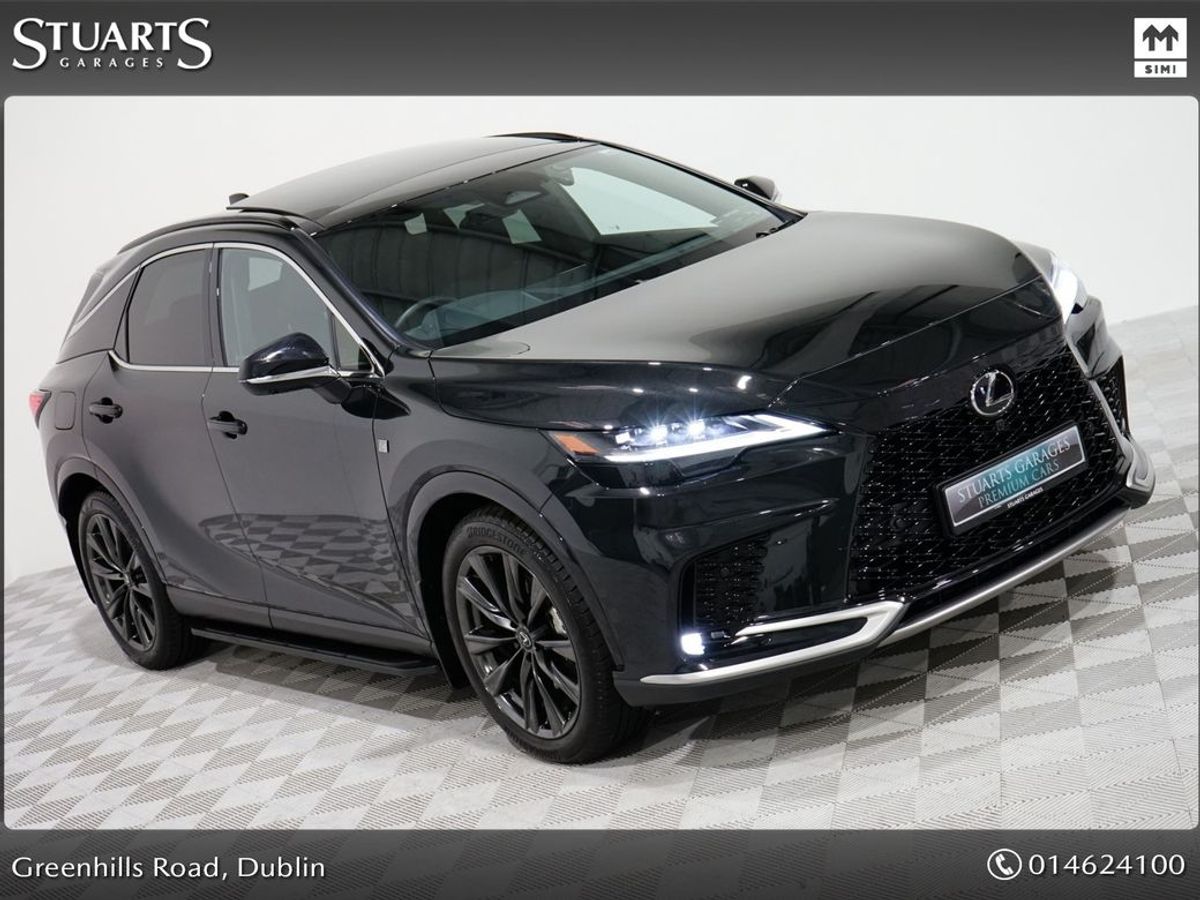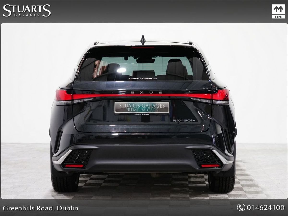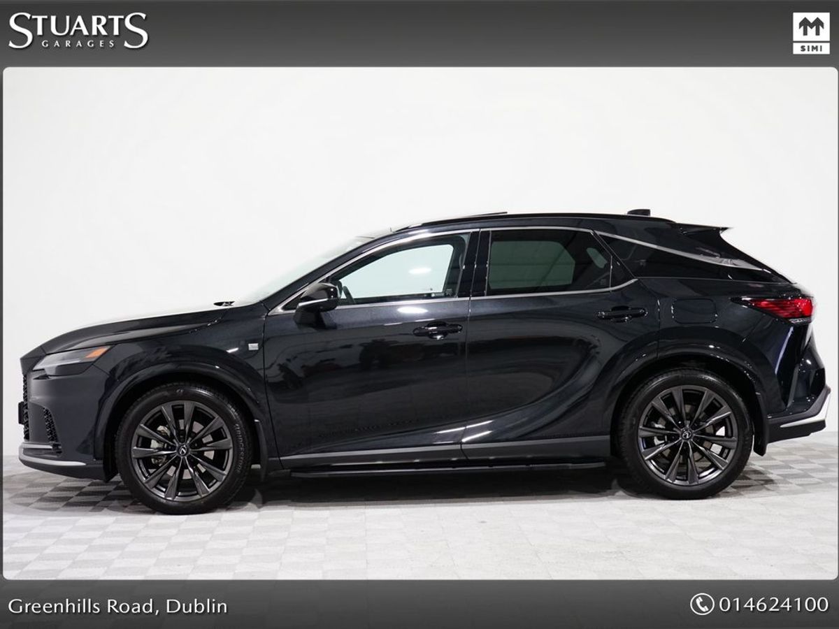 RX450+ PHEV F-SPORT: GRAPHITE BLACK METALLIC, BLACK LEATHER WITH BLACK HOLOGRAM INLAYS, 21 BLACK GLOSS 10 SPOKE ALLOYS, RUNNING BOARDS, PANORAMIC SUNROOF, TRIPPLE LED HEADLIGHTS, EXTERIOR BLACK PACK, HEADS UP, WIRELESS PHONE CHARGER, HEATED STEERING WHEEL, VENTILATED SEATS, ELECTRIC MEMORY SEATS, POWER BOOT, KEYLESS ENTRY, 3 ZONE CLIMATE, WIRELESS APPLE CARPLAY AND ANDROID AUTO, LANE ASSIST, BLIND-SPOT MONITORING ETC