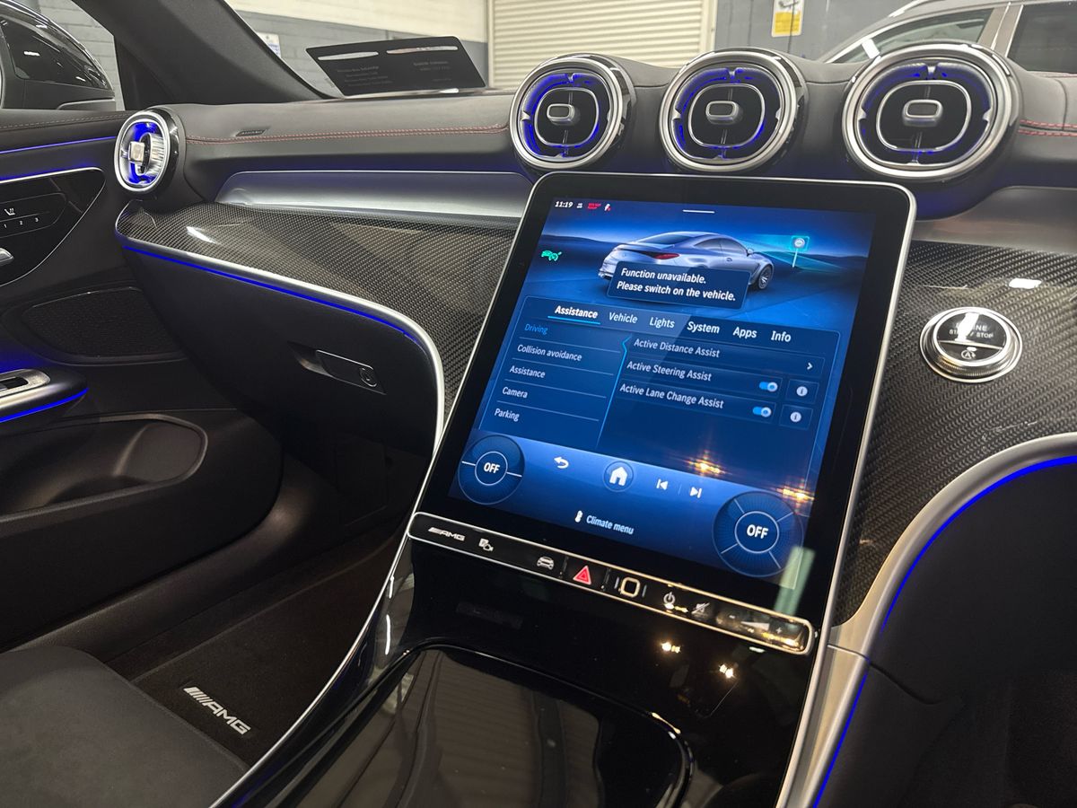 Finished in timeless Obsidian Black Metallic with a refined Black/Anthracite interior in fabric, microfiber, and leather-effect materials, this 2025 Mercedes-AMG CLE 53 4MATIC+ Coupé perfectly blends sophisticated design with exhilarating AMG performance. The cabin has been crafted to excite the senses, featuring AMG Performance Seats with striking red seatbelts, a Nappa leather AMG steering wheel with integrated drive unit controls, high-gloss carbon fibre trim, and illuminated AMG door sills. Premium ambient lighting, a panoramic sliding sunroof, heated front seats, and wireless smartphone charging further elevate the driving experience, while the state-of-the-art MBUX multimedia system with premium navigation, Apple CarPlay, Android Auto, and DAB digital radio ensures seamless connectivity and entertainment on every journey.