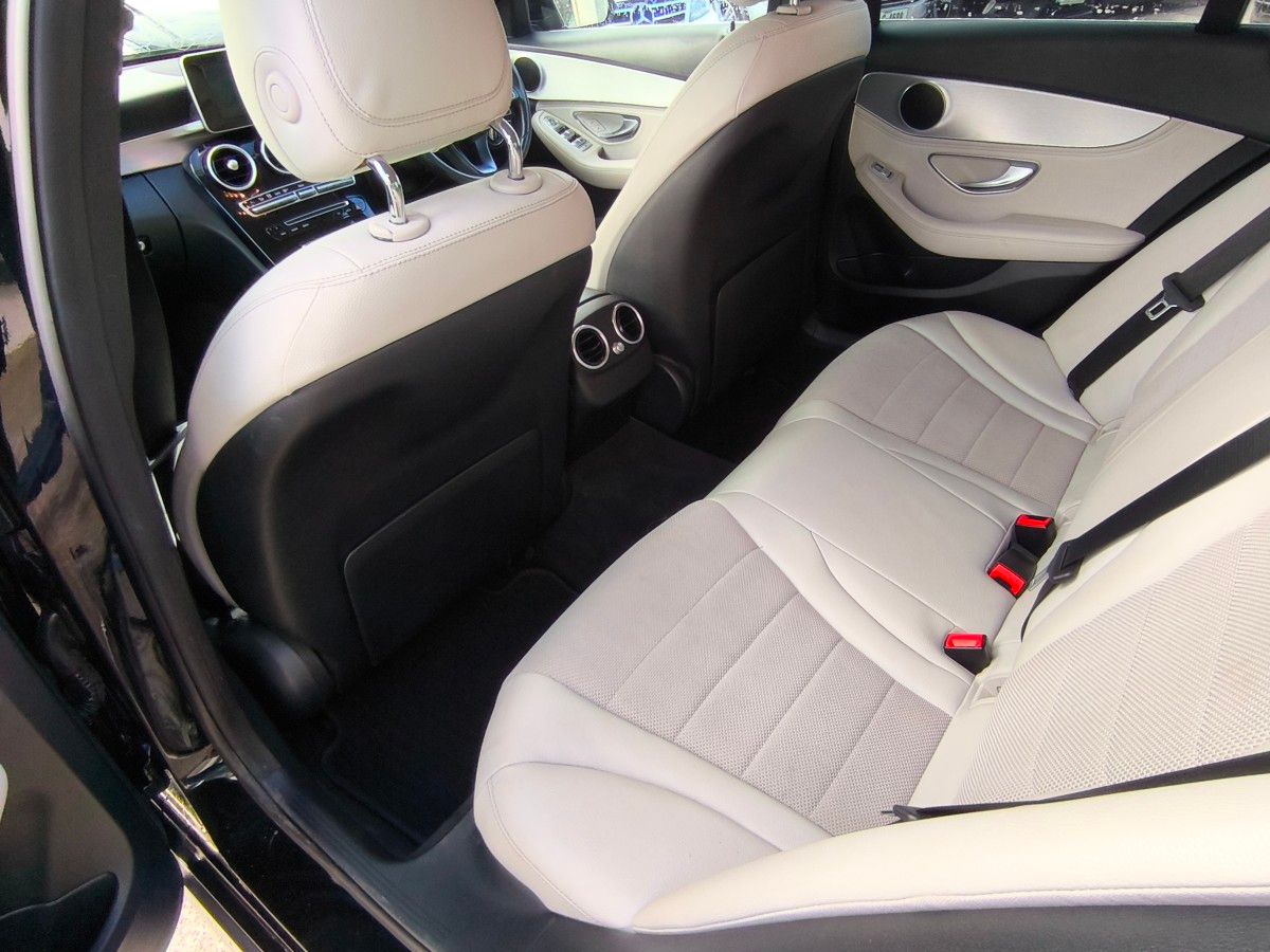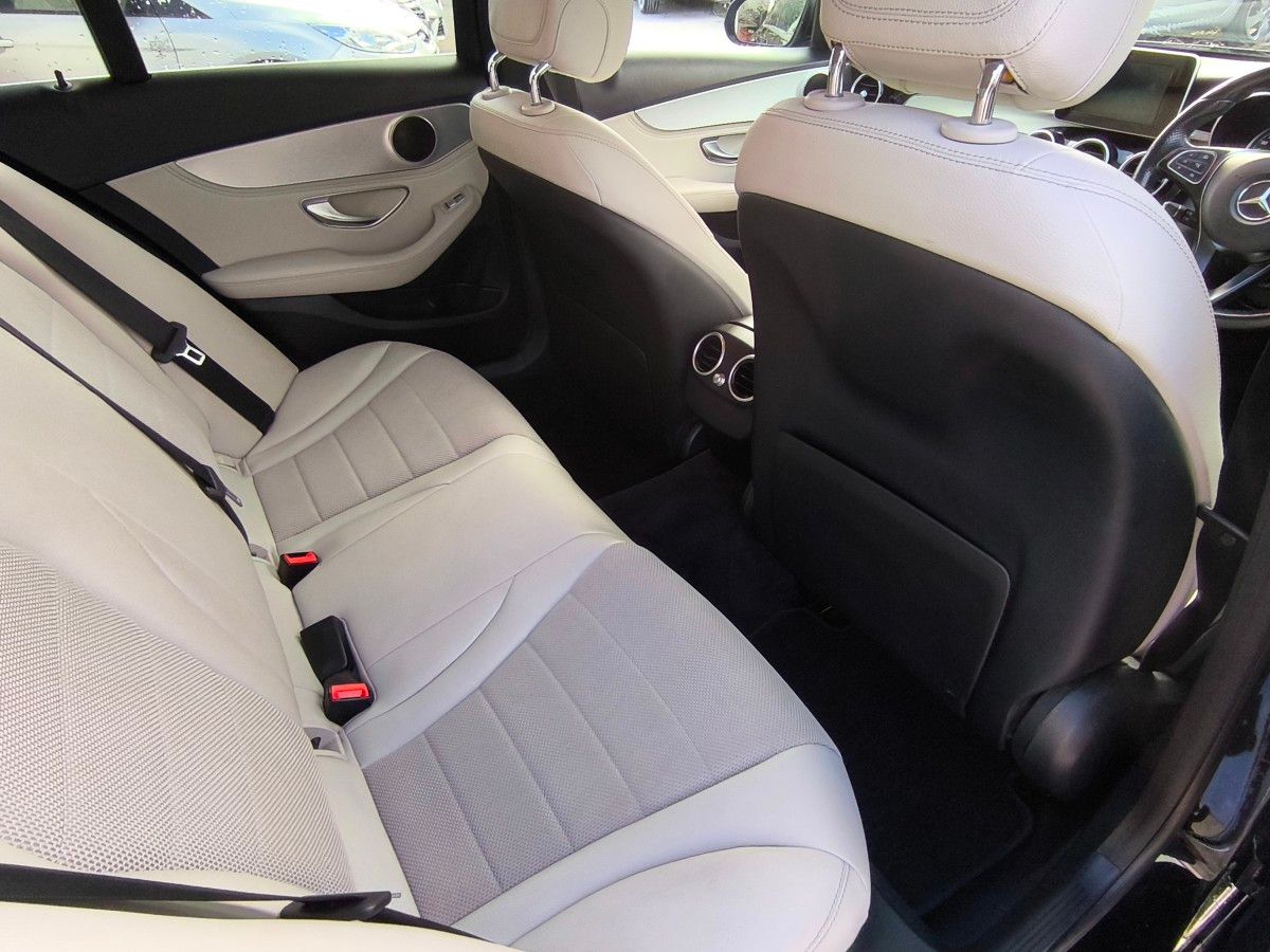 2015 Mercedes C180 Avantgarde Auto in Obsidian Black Metallic with cream cloth/leather, new 19 inch AMG wheel/tire package and privacy glass, excellent service history and both keys, top Avantgarde spec and in excellent condition, will be fully serviced and checked over in our own workshop before sale.