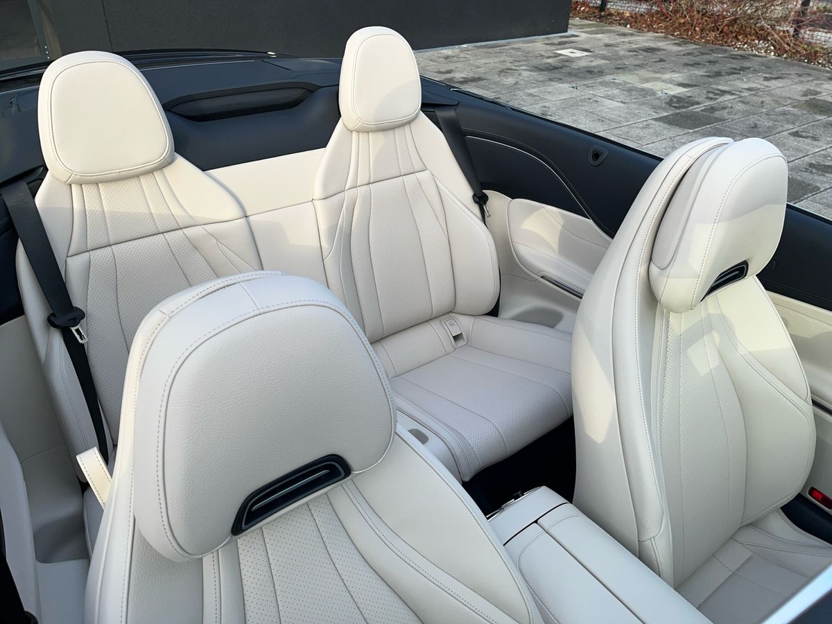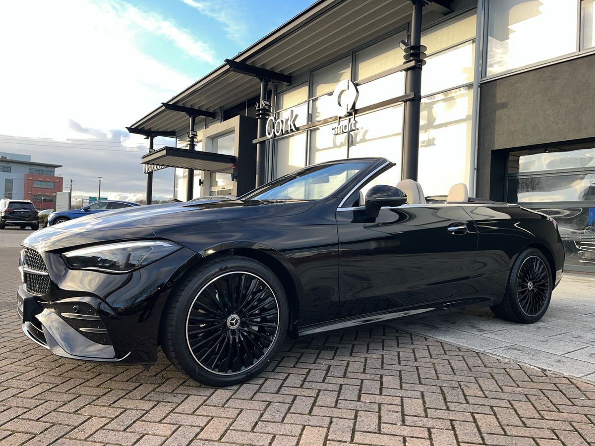 Finished in Plain Black, this CLE 220d AMG Line Plus Cabriolet is paired with a luxurious Macchiato Beige and Black ARTICO leather interior, creating a striking contrast. Desirable highlights include AMG Line exterior and interior styling, 19-inch AMG alloy wheels, AIRCAP, AIRSCARF, ambient lighting Plus, Memory Package, Night Package, heated seats and the advanced MBUX multimedia system with premium navigation and smartphone integration.