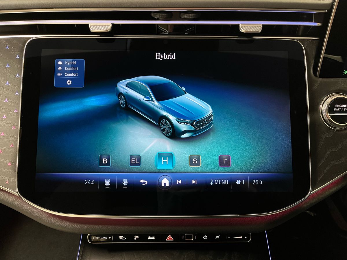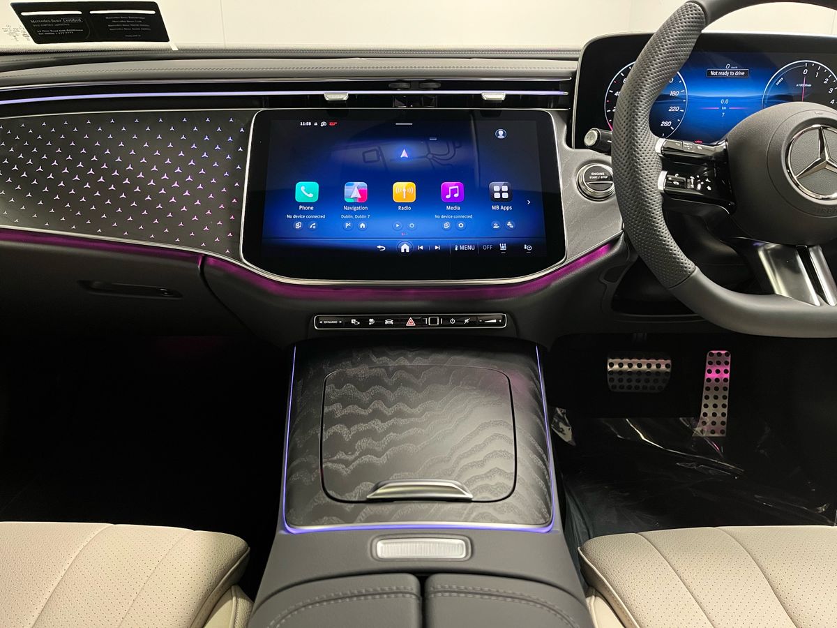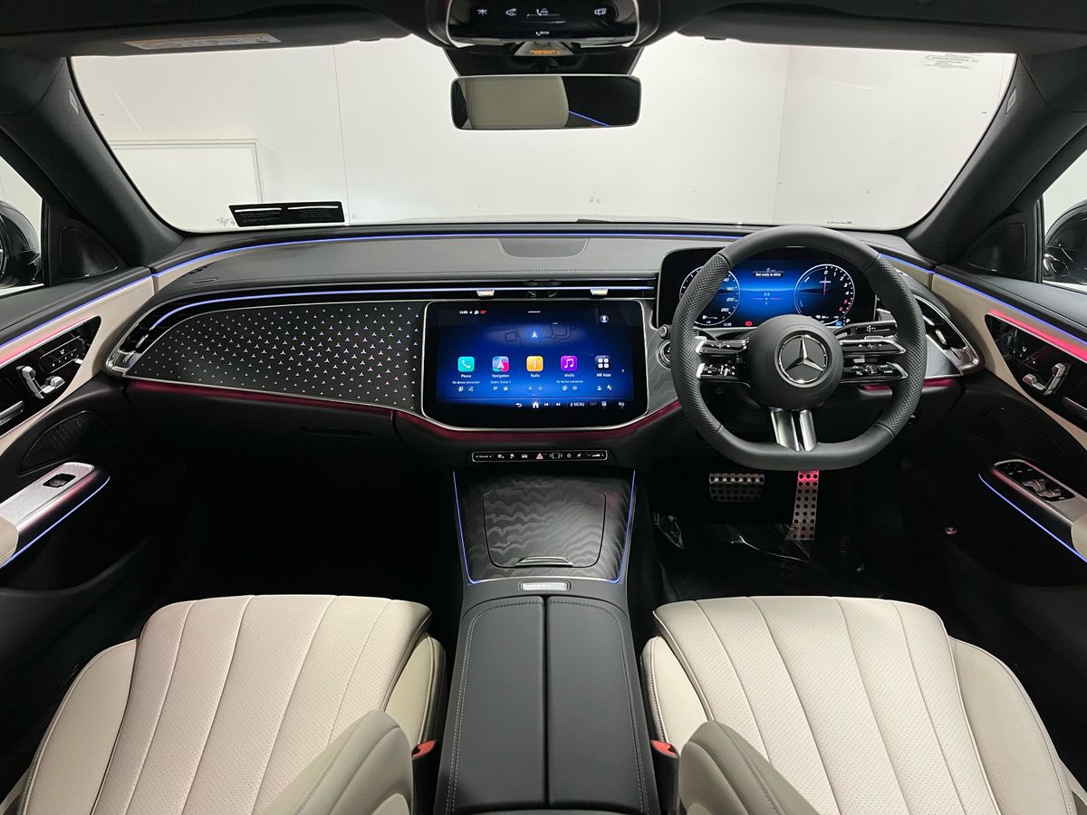 Finished in classic Black, this Mercedes-Benz E 300 de Sedan presents a refined and confident presence, perfectly complemented by a beige imitation leather interior that enhances the light and spacious feel of the cabin. The AMG Line interior and exterior styling bring a dynamic, sporty edge, further elevated by the Night Package and 19-inch AMG double-spoke alloy wheels. Inside, illuminated open-grained black ash wood trim, premium ambient lighting and a supersport leather steering wheel create a sophisticated driving environment. Technology is at the forefront with MBUX Navigation Premium featuring augmented reality, a large central display, wireless smartphone charging and seamless Apple CarPlay and Android Auto integration. Comfort and convenience are assured thanks to heated front seats, KEYLESS-GO, an electric panoramic glass sunroof and a smooth 9-speed automatic transmission. Advanced safety and driver assistance systems include DISTRONIC Pro adaptive cruise control, Blind Spot Monitoring, Active Lane Keeping Assist, a 360° camera and Parking Package High, making every journey effortless. The plug-in hybrid diesel powertrain delivers impressive efficiency and flexibility, combining electric driving capability with the long-distance confidence of diesel power.