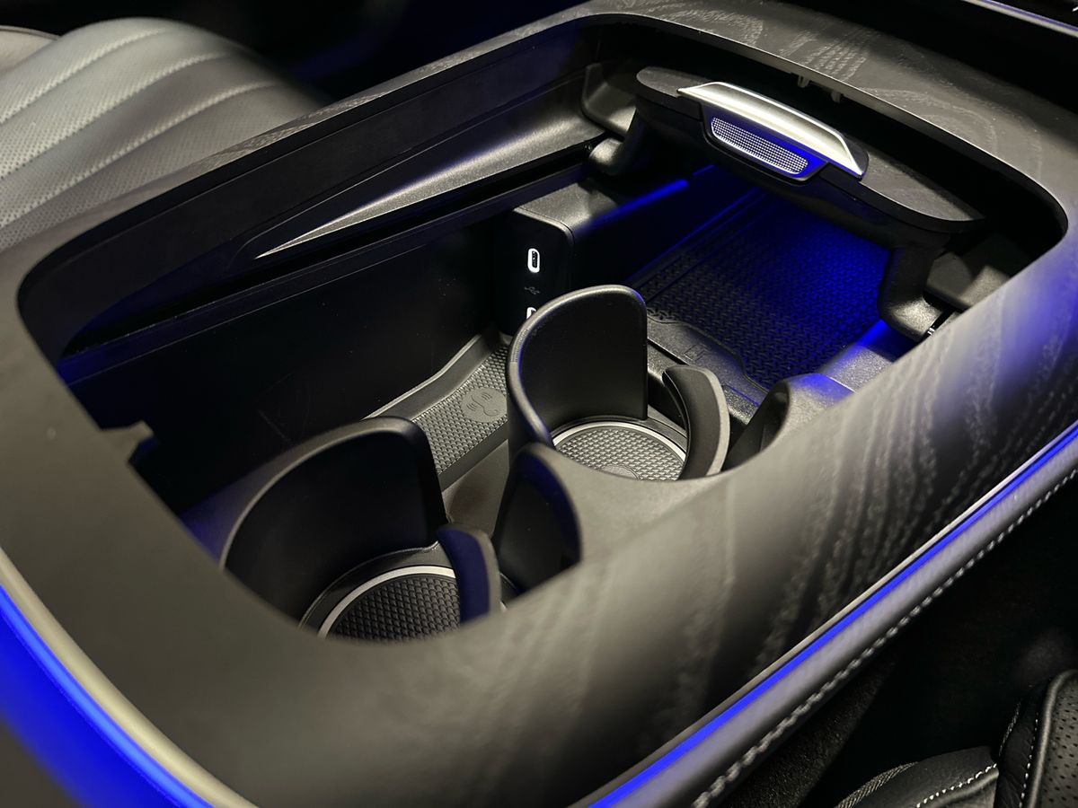 Black leather interior with anthracite accents, AMG floor mats and fine open-pore ash trim