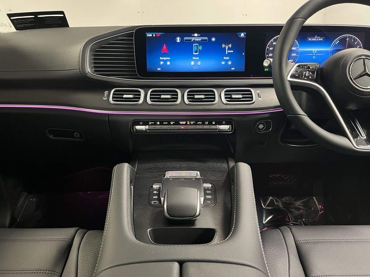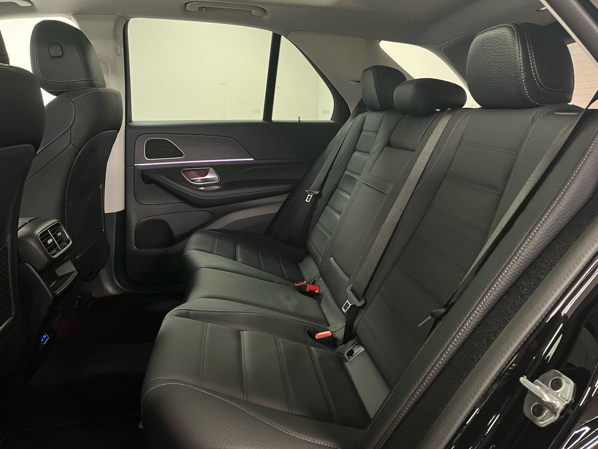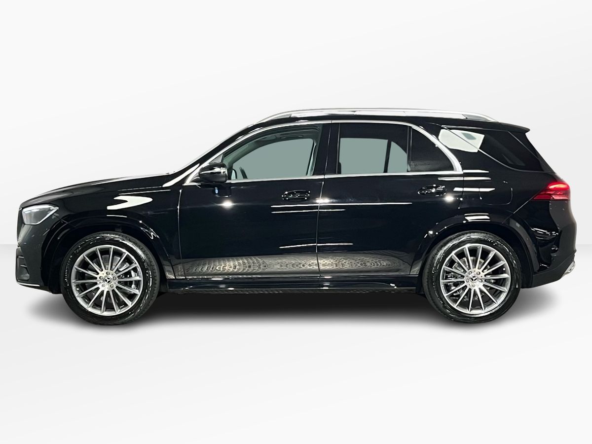 The Mercedes-Benz GLE 350 de 4MATIC is presented in classic Black with a refined Black/Anthracite leather interior, complemented by grey fabric headlining and open-pore oak wood trim for an elegant and modern cabin atmosphere. Highly desirable features include the panoramic sliding sunroof, AMG exterior styling with 21" AMG spoke wheels, LED headlamps, tinted glass, and the Mirror and Parking Packages, enhancing both convenience and road presence. Comfort and technology highlights such as heated front seats, wireless charging, the MBUX Navigation Premium system, Apple CarPlay and Android Auto integration, DAB radio, remote access services, and advanced safety systems—Blind Spot Monitoring, Lane Keeping Assist, Traffic Sign Assist, Collision Warning with Active Brake Intervention, Active Parking Assist, and a rear-view camera—add to its premium appeal. As a plug-in hybrid diesel with AC and DC charging options, this model offers impressive efficiency, long-distance capability, and practicality, supported by hybrid-specific features including external sound generator, multiple charging cables, and enhanced braking. With its spacious SUV design, lowered suspension, high equipment level, and versatile capability, this GLE 350 de delivers luxury, performance, and sustainability in one complete package.
