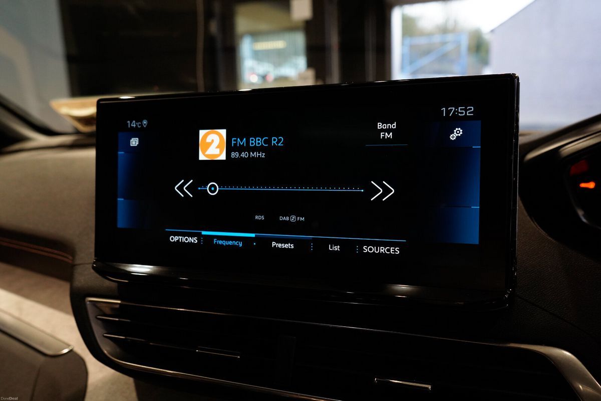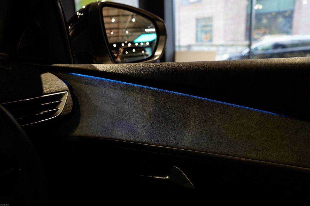 Air conditioning, Climate control, Dual zone climate control, Armrest, Keyless entry, Electric side mirrors, Electric windows, Electric handbrake, Lumbar support, Multi-function steering wheel, Rain sensor, Spare tyre, Gear shift paddles, Android Auto, Apple CarPlay, Bluetooth, MP3 compatible, 12v power outlet, Radio, Touch screen display, USB connection (front), Adaptive cruise control, Cruise control, Hill hold assist, Navigation system, Parking camera, Front parking sensors, Rear parking sensors, Roof rails, Speed limiter, Start-stop system, Traffic sign recognition, Voice control, Parking assistance, Digital instrument panel, Alloy wheels, Leather steering wheel, Ambient lighting, Auto lights (dusk sensor), Daytime running lights, LED headlights, ABS, Anti collision system, Alarm system, Emergency brake assist, Central locking, Driver-side airbag, Immobilizer, Isofix, Lane departure warning, Tyre pressure monitor, Passenger-side airbag, Seat belt warning, Side airbag, Stability control, Traction control