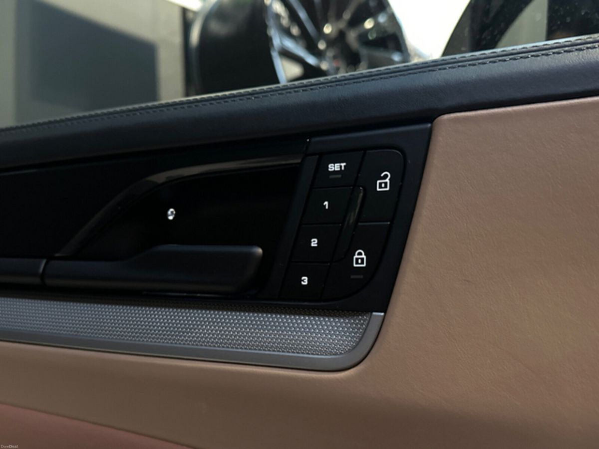 Air conditioning, Climate control, Dual zone climate control, Armrest, Keyless entry, Electrically adjustable seats, Electric boot, Electric side mirrors, Electric windows, Electric handbrake, Multi-function steering wheel, Rain sensor, Split rear seats, Gear shift paddles, Android Auto, Apple CarPlay, Bluetooth, CD, 12v power outlet, Radio, Touch screen display, USB connection (front), Wifi, Cruise control, Hill hold assist, Navigation system, Parking camera, Front parking sensors, Rear parking sensors, Remote boot release, Speed limiter, Start-stop system, Voice control, Parking assistance, Digital instrument panel, Alloy wheels, Leather interior, Leather steering wheel, Spoiler, Adaptive headlights, Auto lights (dusk sensor), Daytime running lights, High beam assist, LED headlights, ABS, Anti collision system, Alarm system, Emergency brake assist, Central locking, Remote central locking, Driver-side airbag, Immobilizer, Isofix, Lane departure warning, Tyre pressure monitor, Passenger-side airbag, Seat belt warning, Side airbag, Stability control, Traction control, Emergency tyre repair kit, Air suspension, 4WD