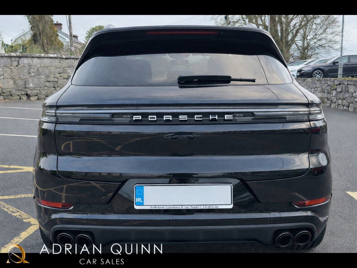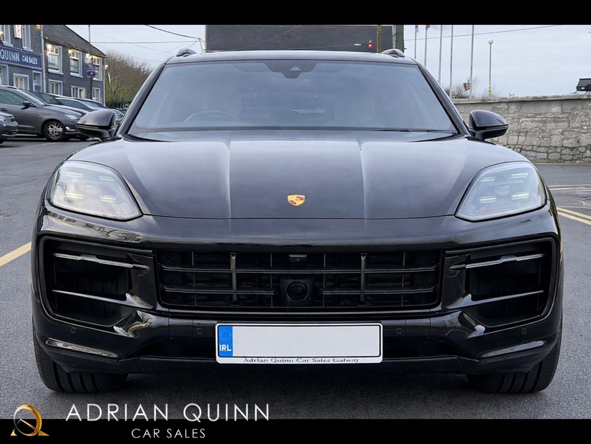 2025 (251) PORSCHE CAYENNE 3.0 V6 470 BHP AWD E-HYBRID AUTO...CHROMITE BLACK METALLIC...FULL CRAYON UPGRADED SMOOTH NAPPA LEATHER WITH BLACK TRIM AND BLACK CARPETS...INTERIOR TRIM IN DEEP BRUSHED ALUMINIUM...INTERIOR ACCENTS IN SILVERSHADE...22 INCH UPGRADED TURBO DESIGN WHEELS IN DIAMOND CUT FINISH WITH EXTENDED ARCHES IN EXTERIOR COLOUR...PORSCHE SPORTS DESIGN KIT IN HIGH GLOSS BLACK...PORSCHE LOGO PAINTED IN HIGH GLOSS BLACK AND MODEL DESIGNATION IN HIGH GLOSS BLACK...SOFT CLOSE DOORS...PORSCHE COMFROT ACCESS WITH KEYLESS ENTRY AND START...FULLY ELECTRIC RETRACTABLE TOW BAR...UPGRADED SPORTS TAILPIPES IN SILVER...UPGRADED PORSCHE ADAPTIVE AIR SUSPENSION...WINDOW TRIMS IN HIGH GLOSS BLACK...ROOF RAILS IN HIGH GLOSS BLACK ALUMINIUM...FULL PANORAMIC GLASS SUNROOF...UPGRADED BOSE SURROUND SOUND SYSTEM...REAR PRIVACY GLASS...HD MATRIX DESIGN HEADLIGHTS...POWER STEERING PLUS...PORSCHE ADAPTIVE CRUISE CONTROL...LANE CHANGE ASSIST...LANE KEEP ASSIST...BLIND SPOT MONITORING...TRAFFIC SIGN RECOGNITION...DOOR SILL GAURDS IN BRUSHED BLACK ALUMINIUM...SPORTS CHRONO PACK WITH COMPASS DIAL IN BLACK...REAR WIPER IN HIGH GLOSS BLACK...AMBIENT INTERIOR LIGHTING PACK...HEATED GT SPORTS STEERING WHEEL...PARK ASSIST INC REVERSE CAMERA...SURROUND VIEW CAMERAS...UPGRADED 14 WAY POWER COMFORT FRONT SEATS WITH MEMORY PACK...HEATED FRONT SEATS...HEATED REAR SEATS...HEATED FRONT WINDSCREEN...DUAL ZONE AUTO CLIMATE CONTROL...TWIN USB INTERFACE IN REAR...PORSCHE CREST EMBOSSED HEADRESTS FRONT AND REAR...PORSCHE LOGO PUDDLE LIGHT PROJECTORS UNDER DOOR...SPORTS PEDAL PADS IN STAINLESS STEEL...PORSCHE COMMUNICATION MANAGEMENT...PCM INC ONLINE NAVIGATION SYSTEM...BLUETOOTH PHONE PREP...APPS INTERFACE...PORSCHE CONNECT PLUS...APPLE CAR PLAY...DUAL USB PORT...DAB DIGITAL RADIO...AUTO BOOTLID...KEYLESS GO...POWER CABLE FOR HOUSEHOLD OULET...11 KW AC ON BOARD CHARGER...FINANCE ARRANGED...PCP AVAILABLE...COST ++EURO++145k NEW...