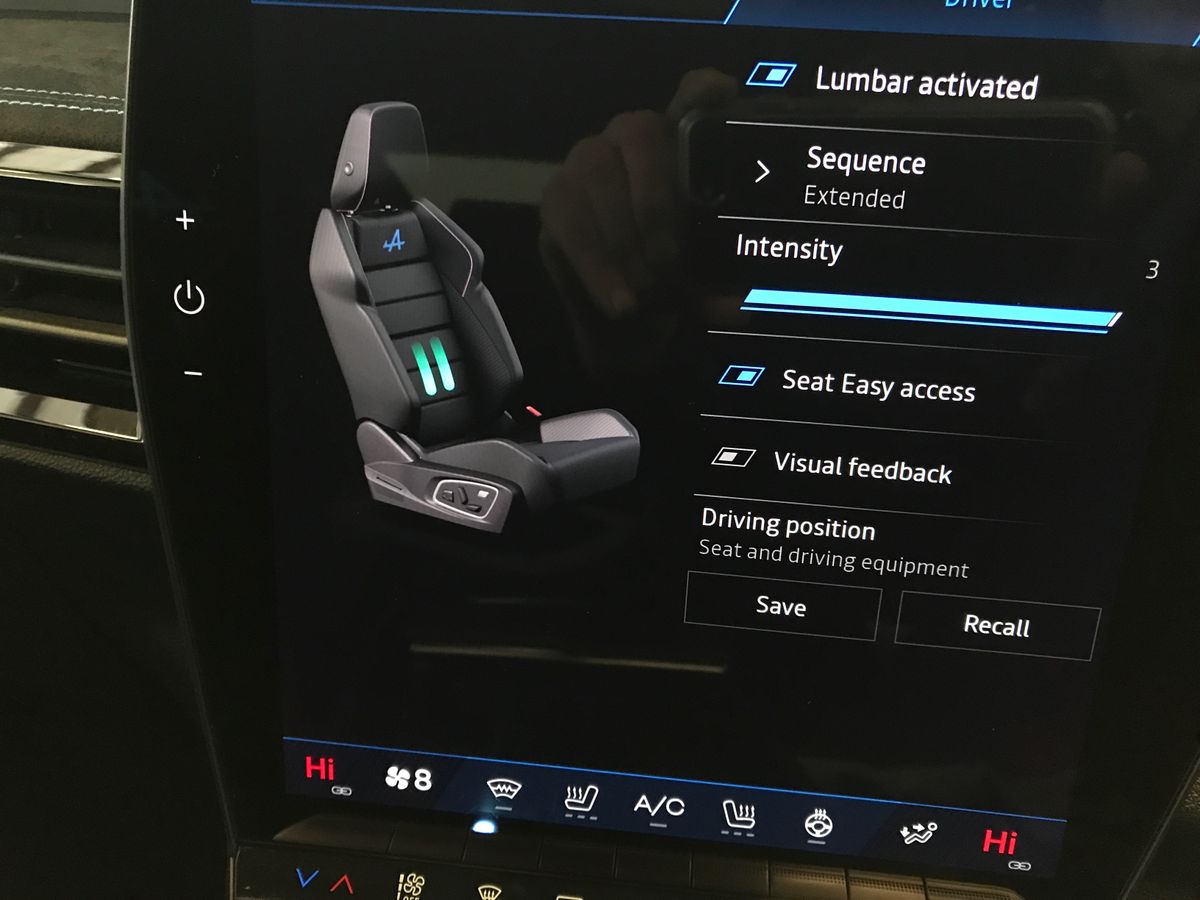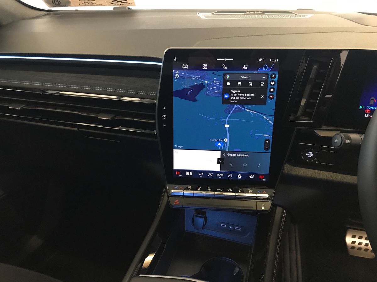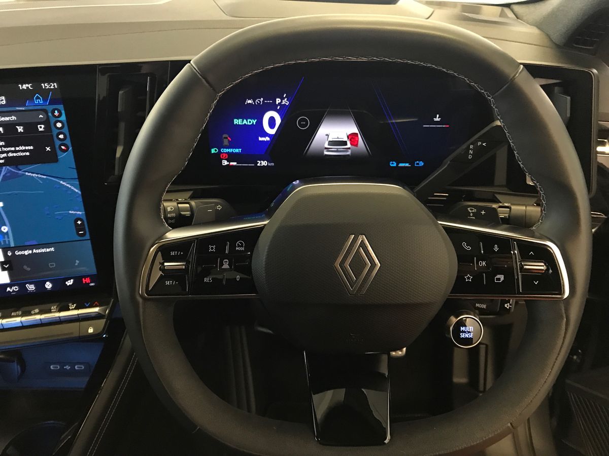 Every Rafale comes with an E-Tech Full Hybrid 200 bhp engine, which combines a 1.2-litre turbocharged engine with two electric motors (one's 50kW, the other is a tiny 25kW one on the engine starter) and a 2kWh electric battery.