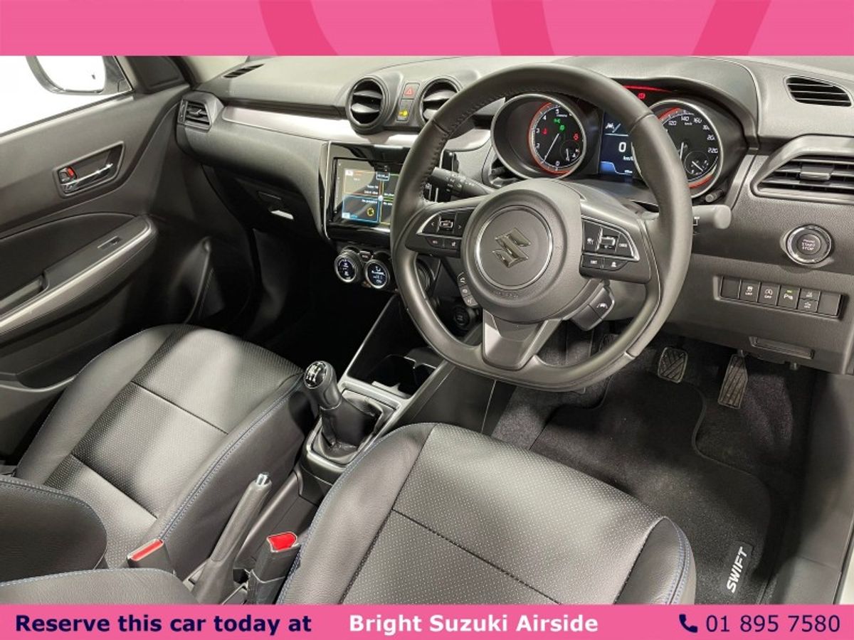This is a Special Bright Edition Swift SportLine 1.2 Hybrid with full Carbon Fibre-look body kit, Black with Cream perforations leather heated seating with Electric Blue stitches, carbon-look fuel cap, electric blue front and rear callipers plus all the normal Suzuki features.
