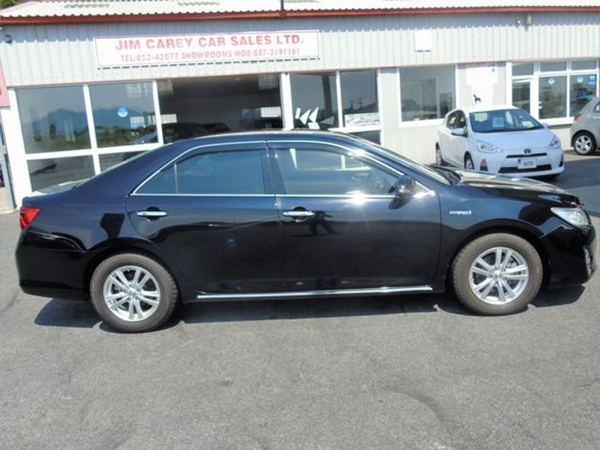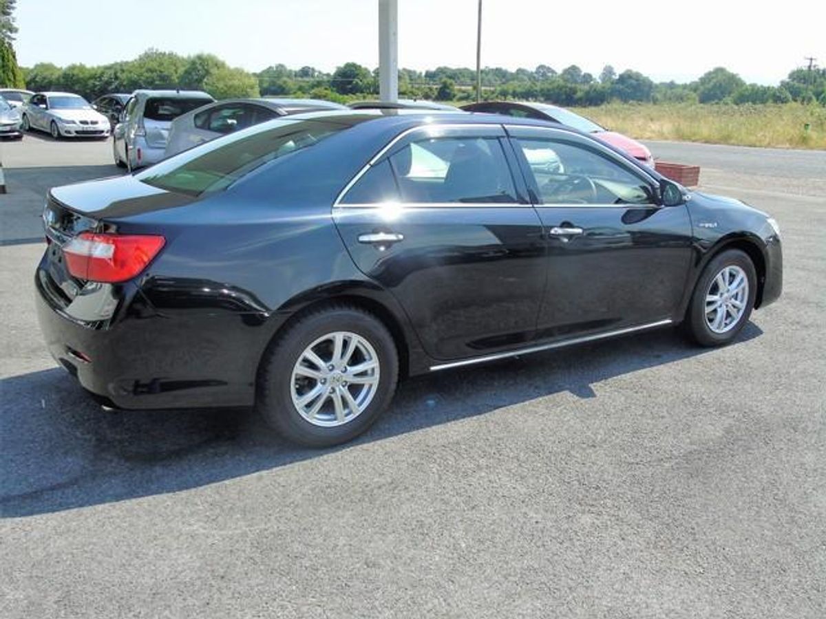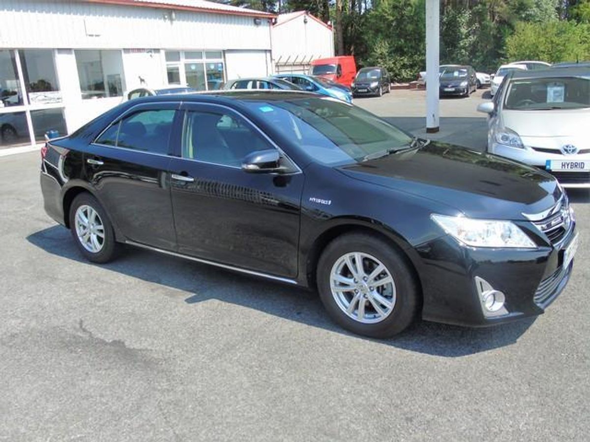 2012 Toyota Camry Hybrid, high spec and in midnight black. Toyota's flagship car comes with a 2.4 Hybrid petrol engine achieving over 50 MPG and only €180 annual road tax. Pure dream car to drive with spectacular comfort. Comes with heated and electric seats, cruise control, reversing camera, air con, ev mode, dual climate control, sat nav, bluetooth and more.
