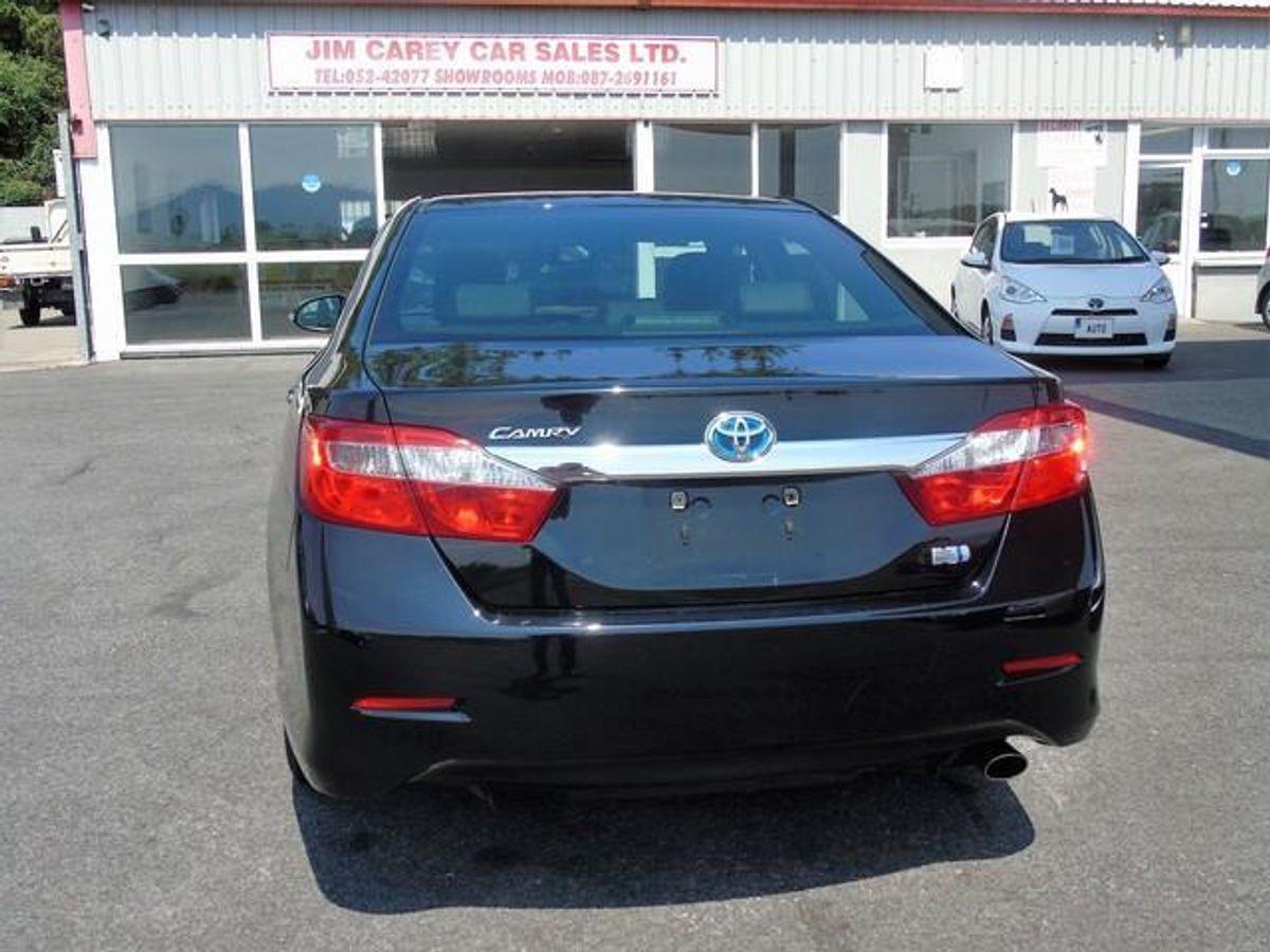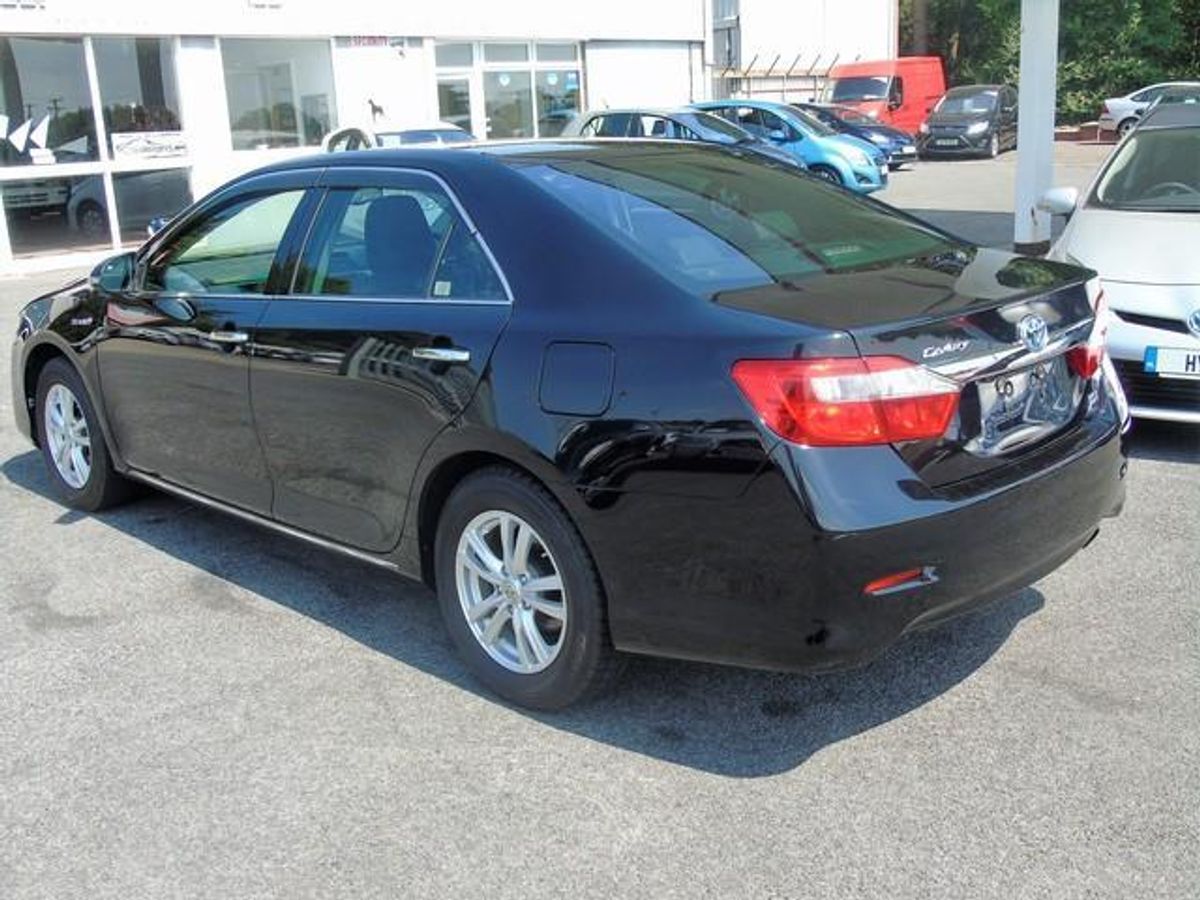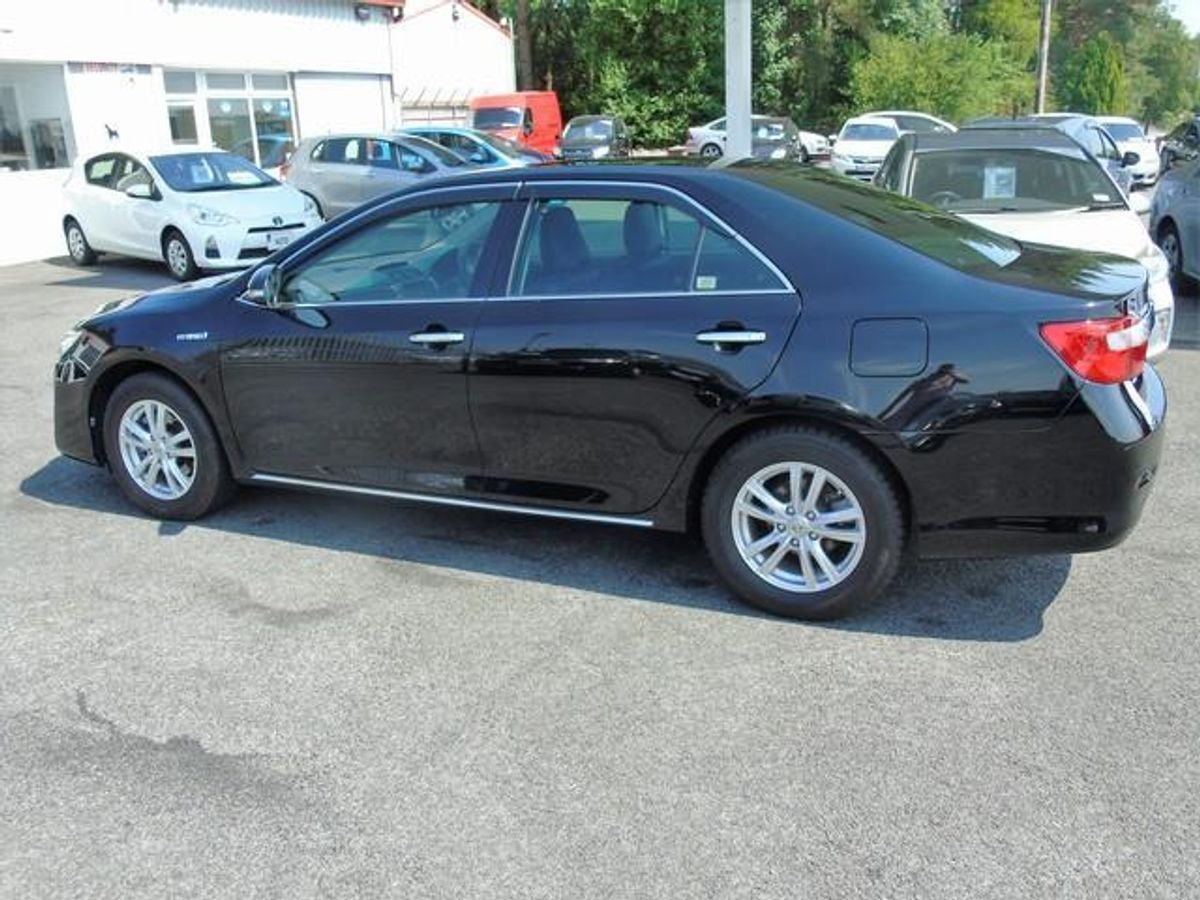 2012 Toyota Camry Hybrid, high spec and in midnight black. Toyota's flagship car comes with a 2.4 Hybrid petrol engine achieving over 50 MPG and only €180 annual road tax. Pure dream car to drive with spectacular comfort. Comes with heated and electric seats, cruise control, reversing camera, air con, ev mode, dual climate control, sat nav, bluetooth and more.