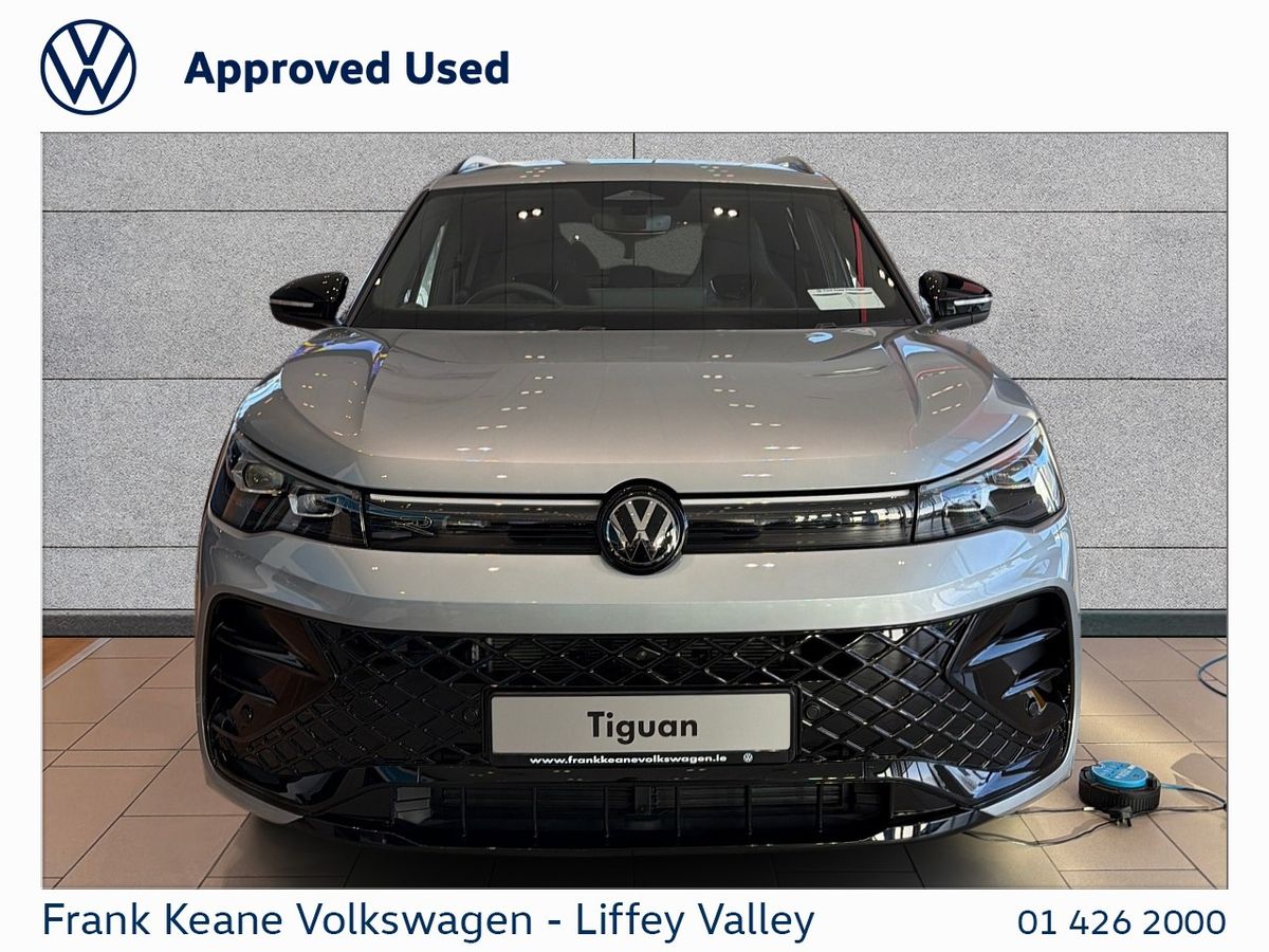 TIGUAN R-Line 75 at Frank Keane Volkswagen Liffey Valley, We have this 2026 Volkswagen Tiguan R-Line 75 Pre Reg Special with only Delivery Kms. Finished in Dolomite Silver Metallic with an R-Line” Cloth Soul Black Seats.