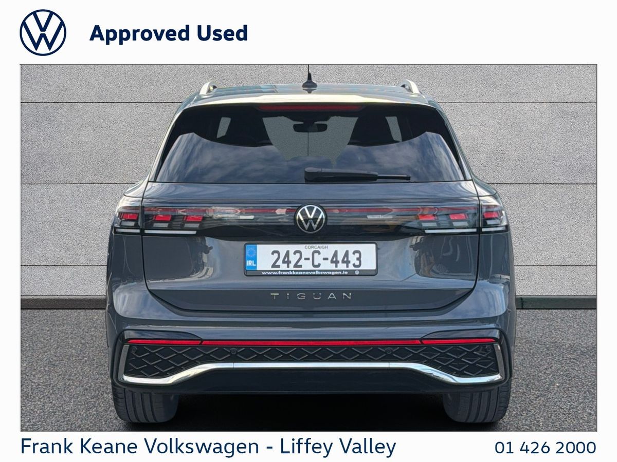 TIGUAN R-Line at Frank Keane Volkswagen Liffey Valley, We have this 2024 Volkswagen Tiguan R-Line with only 17,042km. Finished in Dolphin Grey Metallic with an R-Line” Cloth Soul Black Seats.