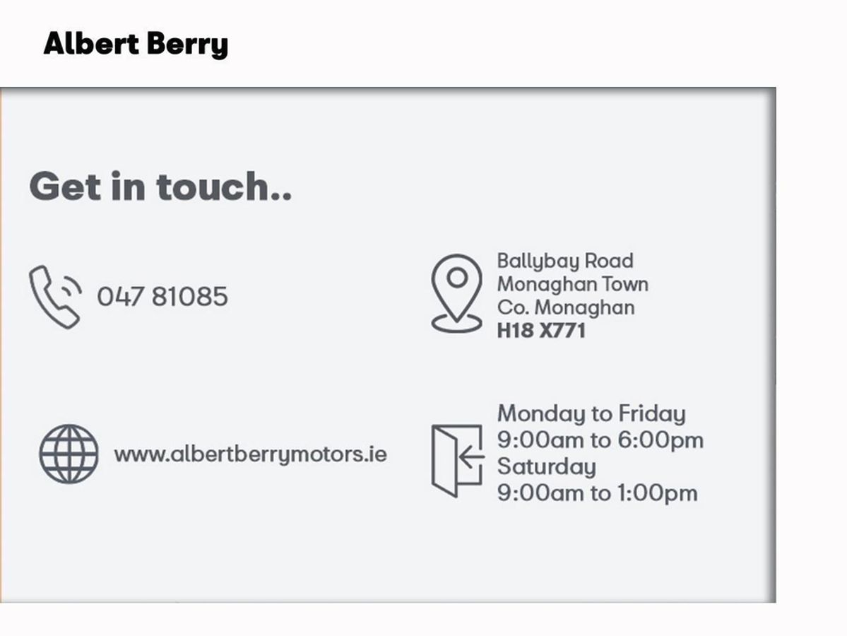 Central Locking, Electric Windows, Airbag, Cruise Control, Privacy Glass, Centre Armrest, Multi-function steering wheel, Roof Rails, Satellite Navigation, Traction Control, Metallic Paint, Anti-Theft System, Parking Sensors, Bluetooth, Isofix, Active Safety Braking / City Brake / Collision Alert, Stop/Start Button, External Devices Connectivity, Cup holders, Remote boot/hatch/rear door release, Stability control