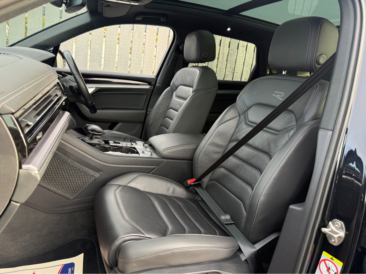 Has the electrically operated sunroof, full leather R-line interior, heated steering wheel, heated seats, 360 cameras.