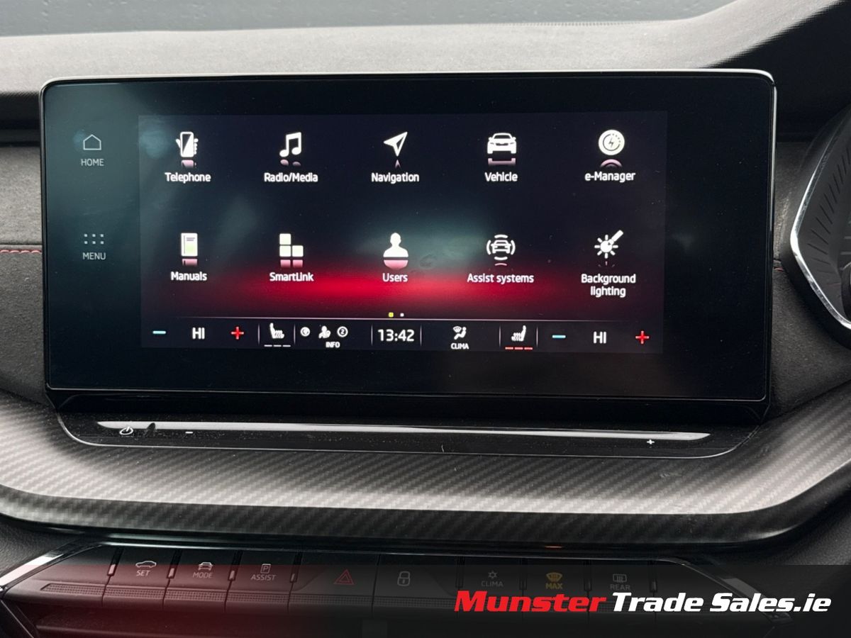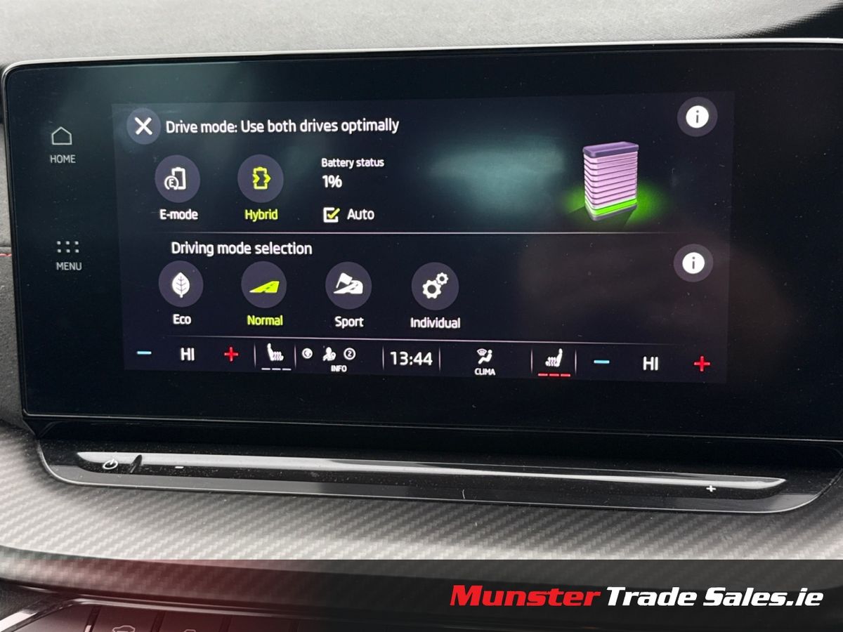Dynamic performance meets cutting-edge efficiency — the Octavia VRS iV combines a 1.4-litre TSI petrol engine with an electric motor, delivering a total output of 245 PS through a 6-speed DSG automatic transmission.