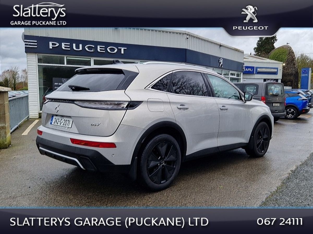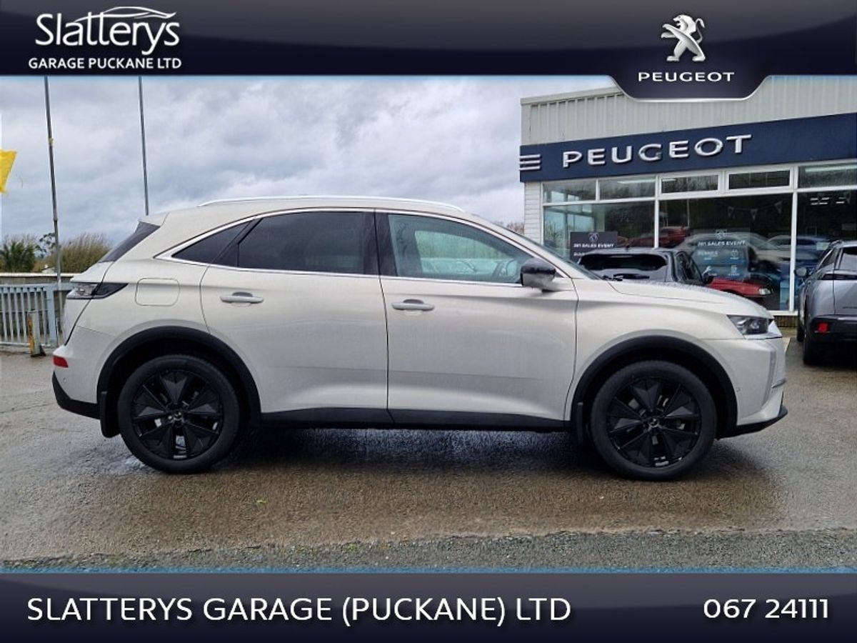 2024 DS7 Rivoli 8 Speed Auto HDI in excellent condoition. This SUV comes fully serviced, valated & with remaining manufacturers warranty until october 29 or 100,000 kms. Standard features include Reversing camera, Park assist, Bluetooth interface, Safety pack, Pixel Auto LED Lights, 19" diamond cut alloys, Full leather interior, Electric memory heated seats, Massage function on front seats, Electric tailgate, Privacy glass, Navigation, Apple carplay / Android auto, Power folding door mirrors, & many more features. Competitive finance packages available. Call Niall, Michael or Andrew on 067/24111 for more details.