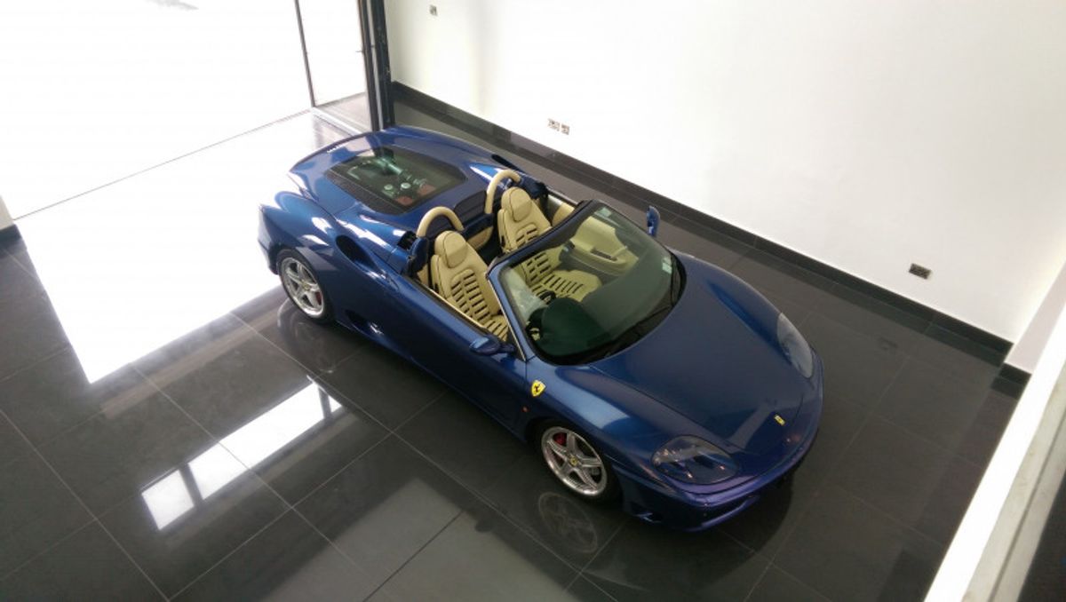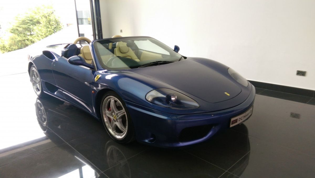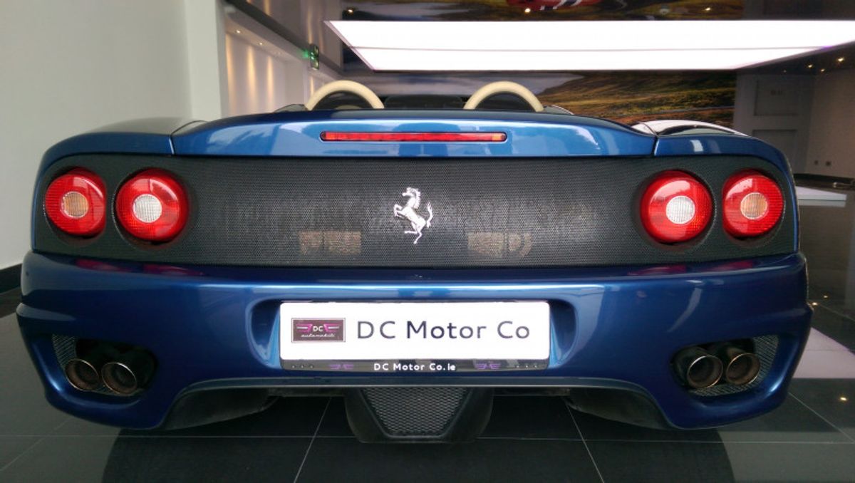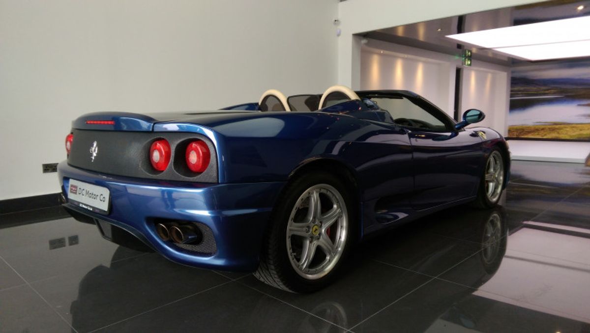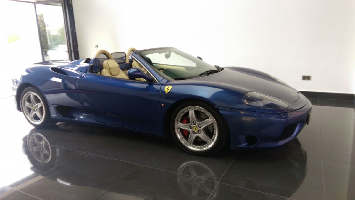 Beautiful 360 Spider, 19 Inch Modular Split Rims, Cream Daytona Style Seats with blue piping trim, Blue carpets, Electrically Operated Seats, Scuderia Ferrari Shields on Front Wings, Hi-fi Sound System (With Subwoofer), 6 CD Changer, Rear Challenge Style Black Grille, Contrasting Blue Hood, Comprehensive service history, and belts all done recently, Excellent bodywork, Interior - Excellent Condition, Tyre condition Excellent, Standard Features - Electric door mirrors, Alarm, Electric windows, Remote central locking, Immobiliser, Airbags, Sports seats..please call for more details.
