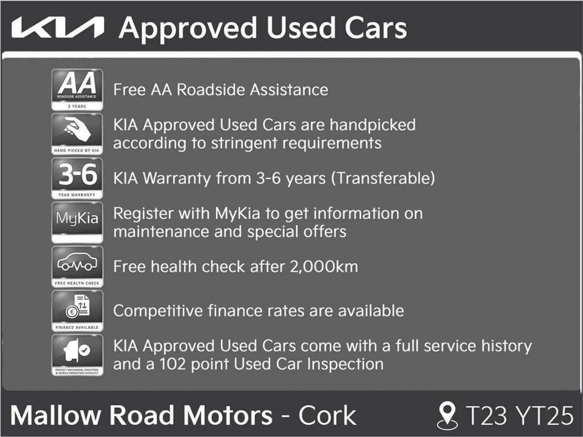 CALL 021-4392066 OR VISIT T23 YT25(KIA CITROEN) T23 Y622 (PEUGEOT) TO ARRANGE A VIEWING OR ANY QUERIES REGARDING THIS VEHICLE. ALL OUR CARS COME FULLY SERVICED, VALETED AND WITH WARRANTY. TRADE-INS WELCOME. TAILORED AND COMPETITIVE FINANCE AVAILABLE GIVE US A CALL. Central Locking, Electric Windows, Airbag, Cruise Control, Fog Lamps, Rear Spoiler, Centre Armrest, Multi-function steering wheel, Satellite Navigation, Traction Control, Anti-Theft System, Parking Sensors, Bluetooth, Isofix, Apple Car Play, Android Auto, Active Safety Braking / City Brake / Collision Alert, External Devices Connectivity, Cup holders, Remote boot/hatch/rear door release, Stability control
