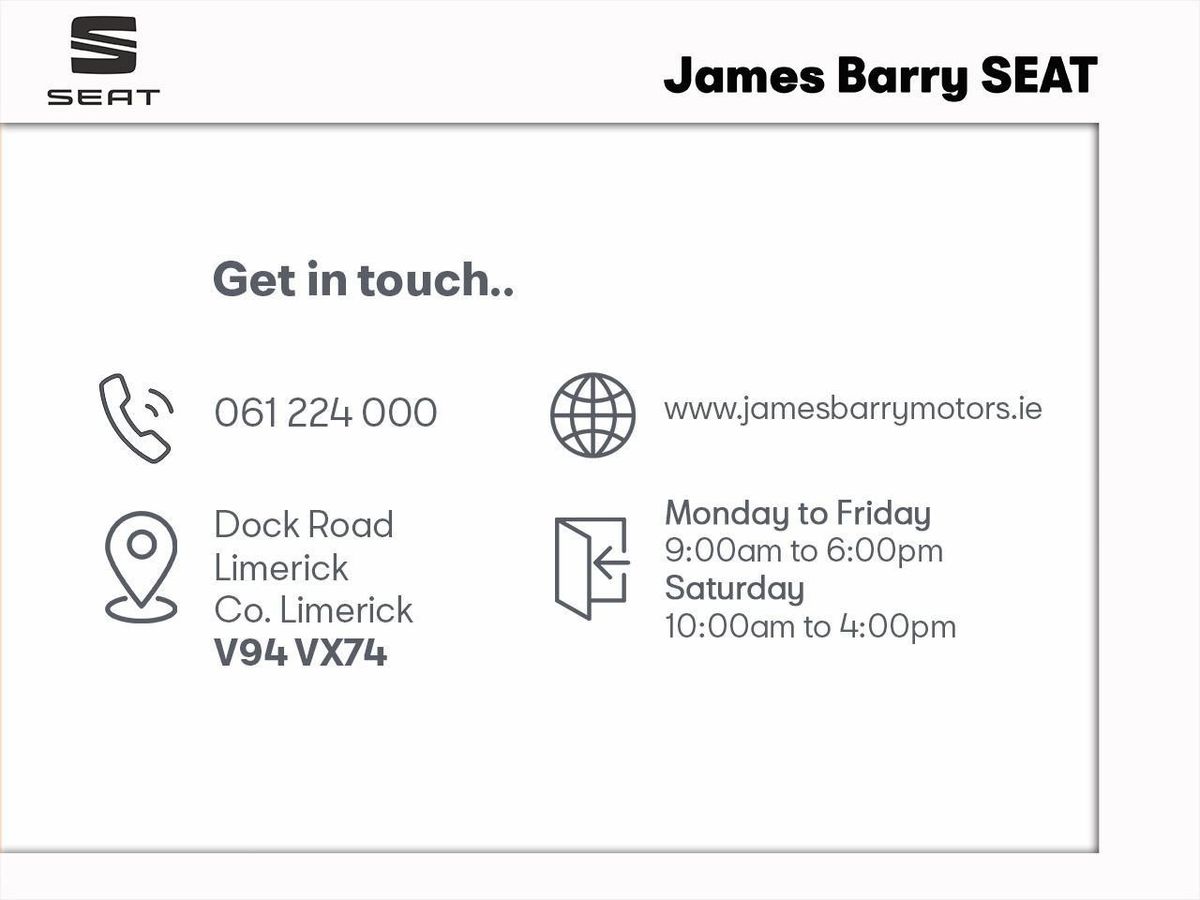 For queries or to book a test drive call James Barry Motors 061-224000